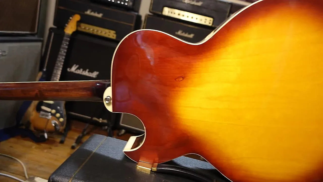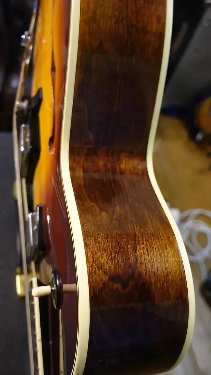 Other than a bump on the top near the tailpiece the guitar is in great cosmetic condition for its age.