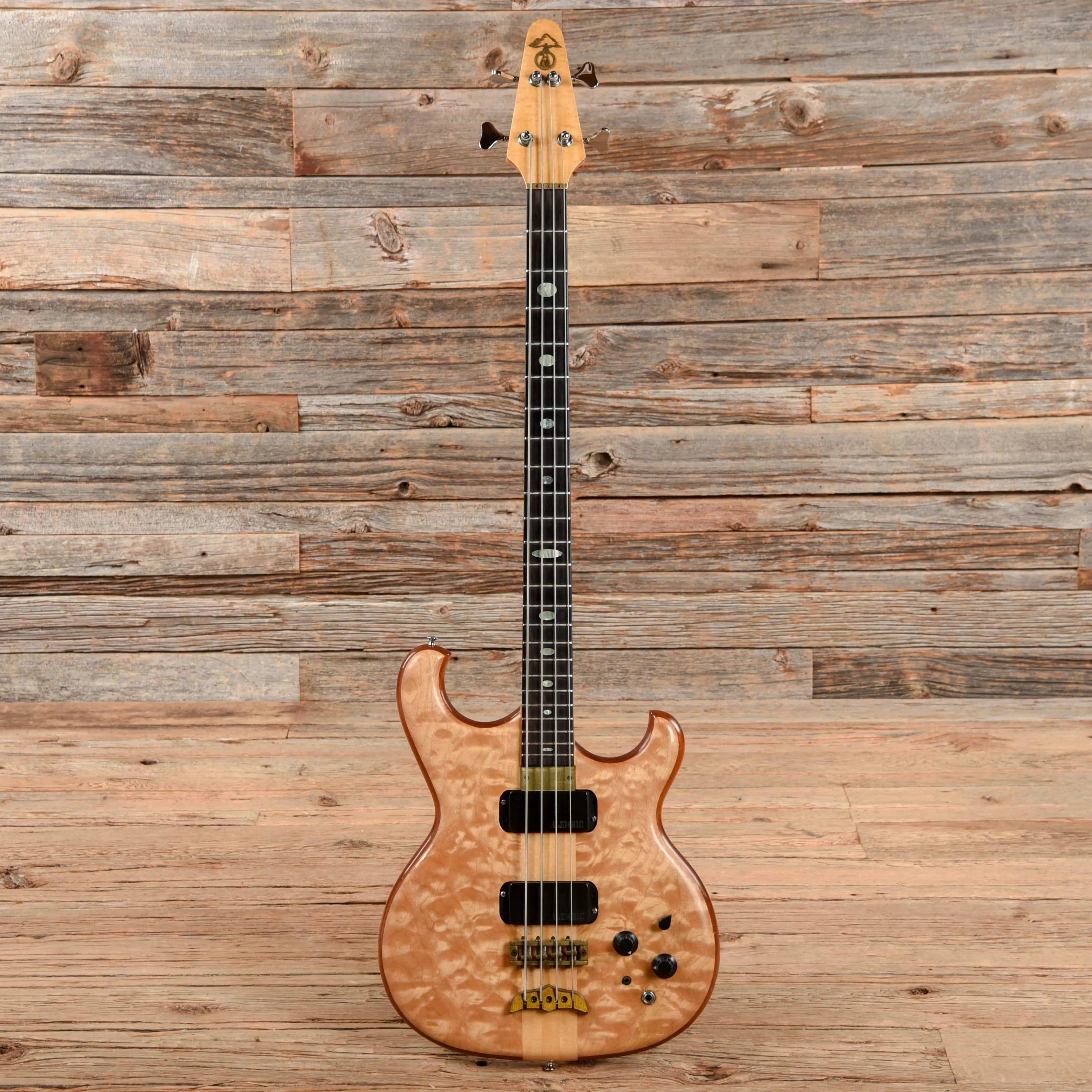 Electronics: Original active Alembic pickups and preamp. Controls include a 4-way pickup selector switch (mute, neck, both, bridge), master volume pot, master tone pot, and mid-tone selector switch.