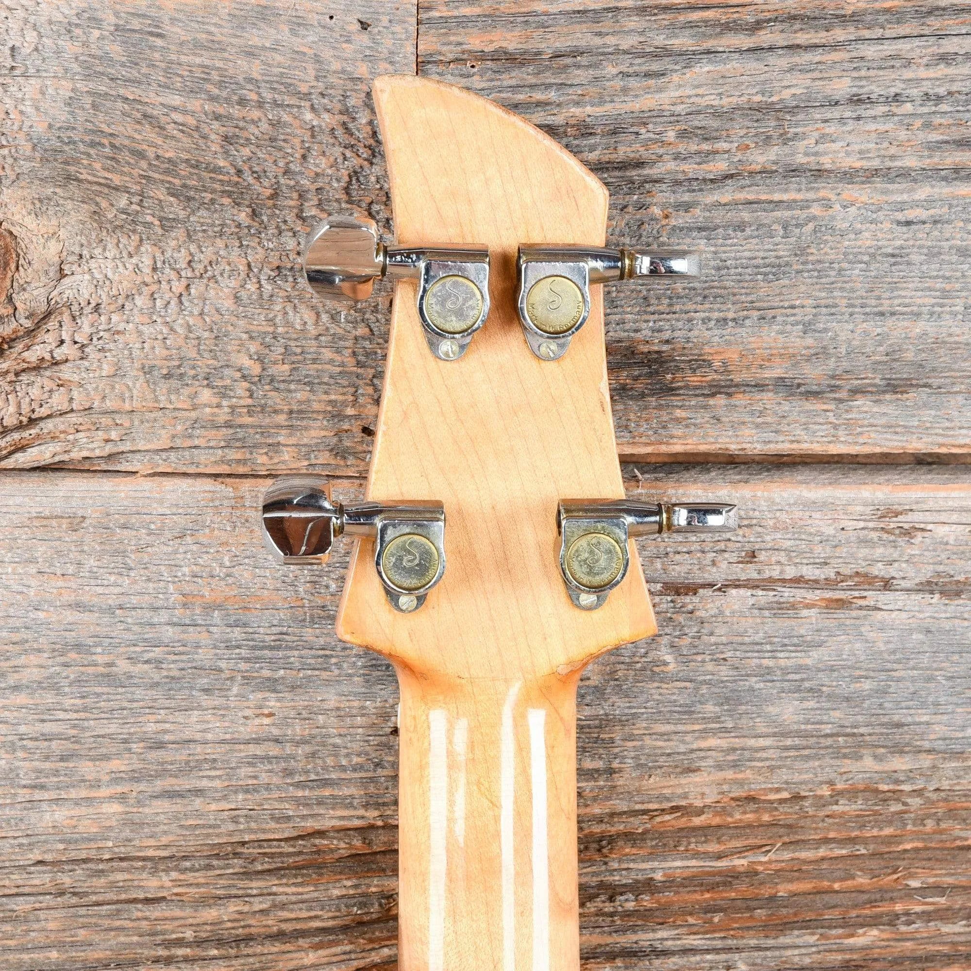 Cosmetic Condition: This Ampeg bass overall shows light play wear for its age with minor blemishes throughout. The neck shows nice play wear with the finish worn away on the bass side near the 2nd through 7th frets. Silver fingernail polish is painted over the side position markers,