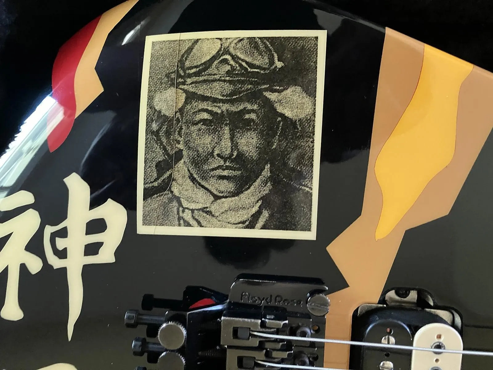 This Kamikaze’s been through the trenches — and it’s better for it. You can feel the vibe the second you pick it up. It’s got that raw neck profile, killer fretwork, and that unmistakable Lynch tone: articulate but savage. The original graphic finish has some honest wear, but nothing that messes with the mojo — just enough to say, “Yeah, I’ve seen some things.”