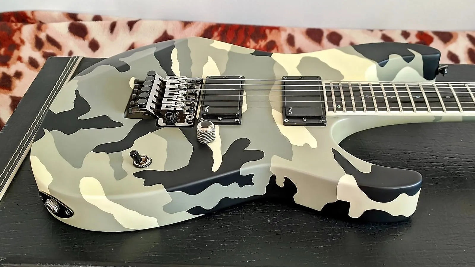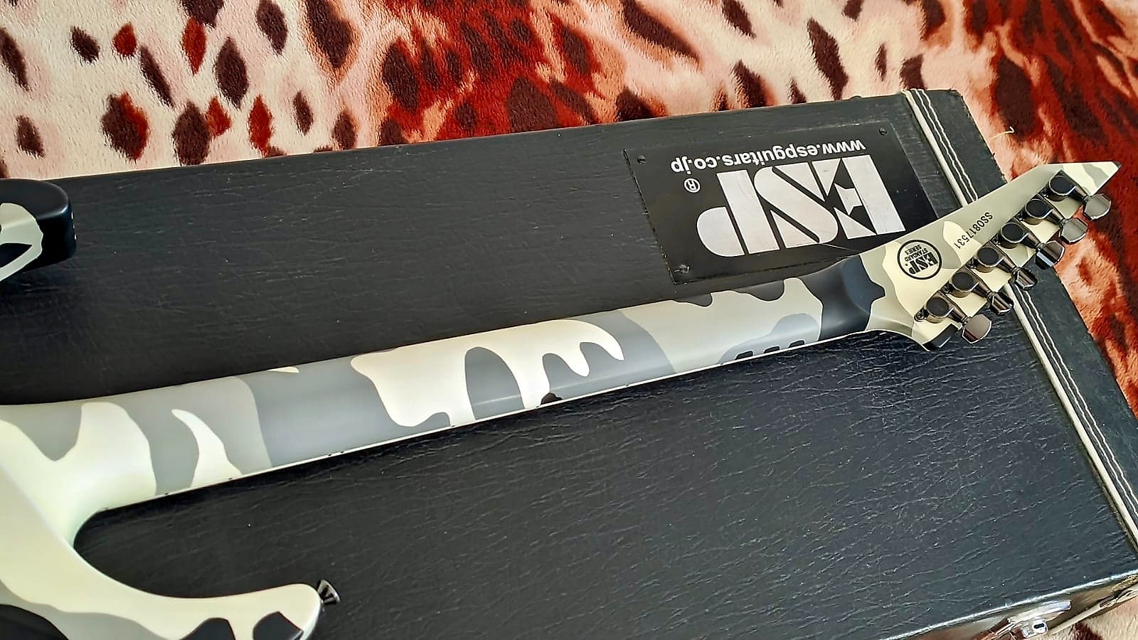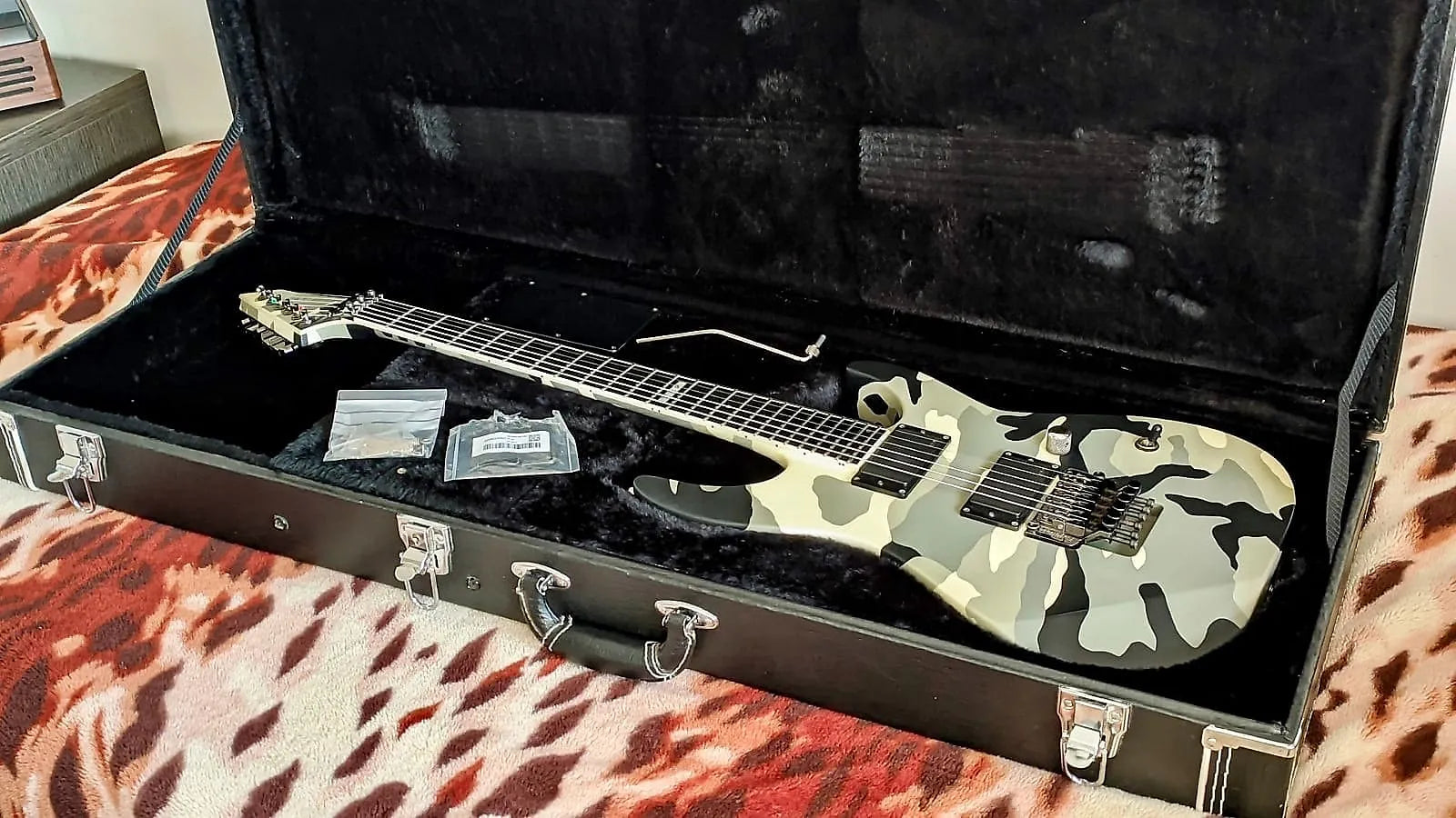 This ESP M-II in Urban Camo is a rare bird — and it flies fast. Whether you’re a thrash junkie, solo shredder, or just love a good Floyd-equipped beast with style, this one hits every mark.