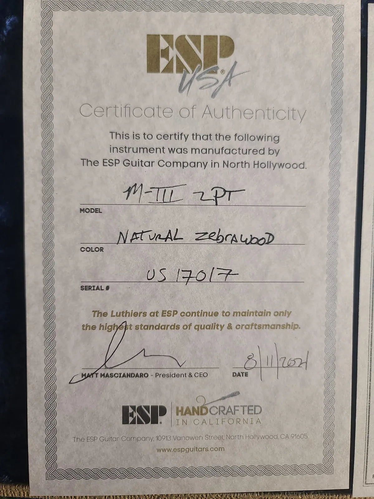 Alright — let’s just get this out of the way: this 2017 ESP USA M-III Zebrawood is #2 out of a 20-piece run. Twenty. Total. If you’re into rare, boutique-level guitars that are built to perform but also look like they belong in a glass case… you’re gonna love this one. From the natural finish to the exotic top, this is one of those guitars that people notice the second you pull it out.
