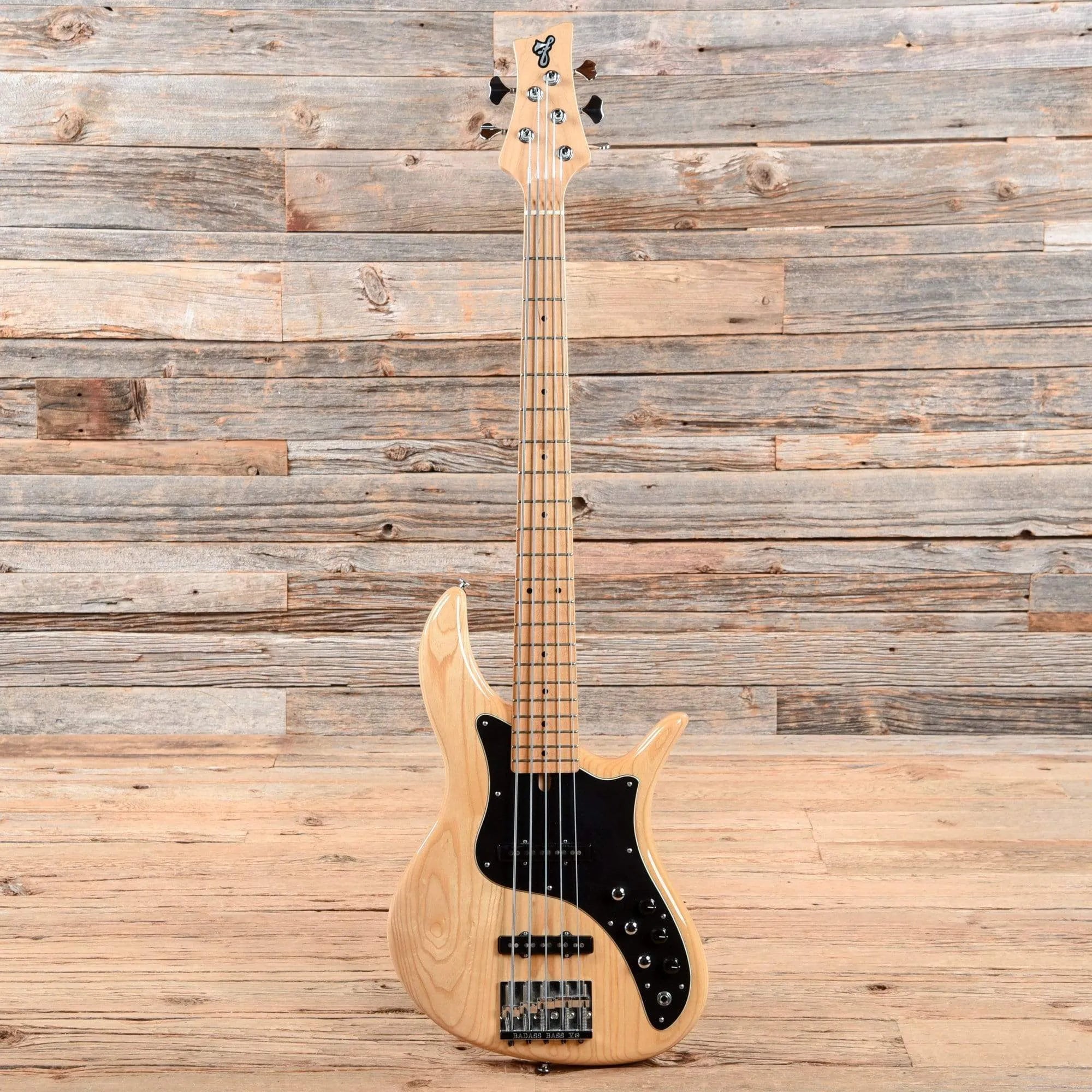 Electronics: Unmarked active pickups in middle and bridge positions. Controls include volume pots for each pickup, a master tone pot with push/pull for active/passive modes, and a 3-band active eq.