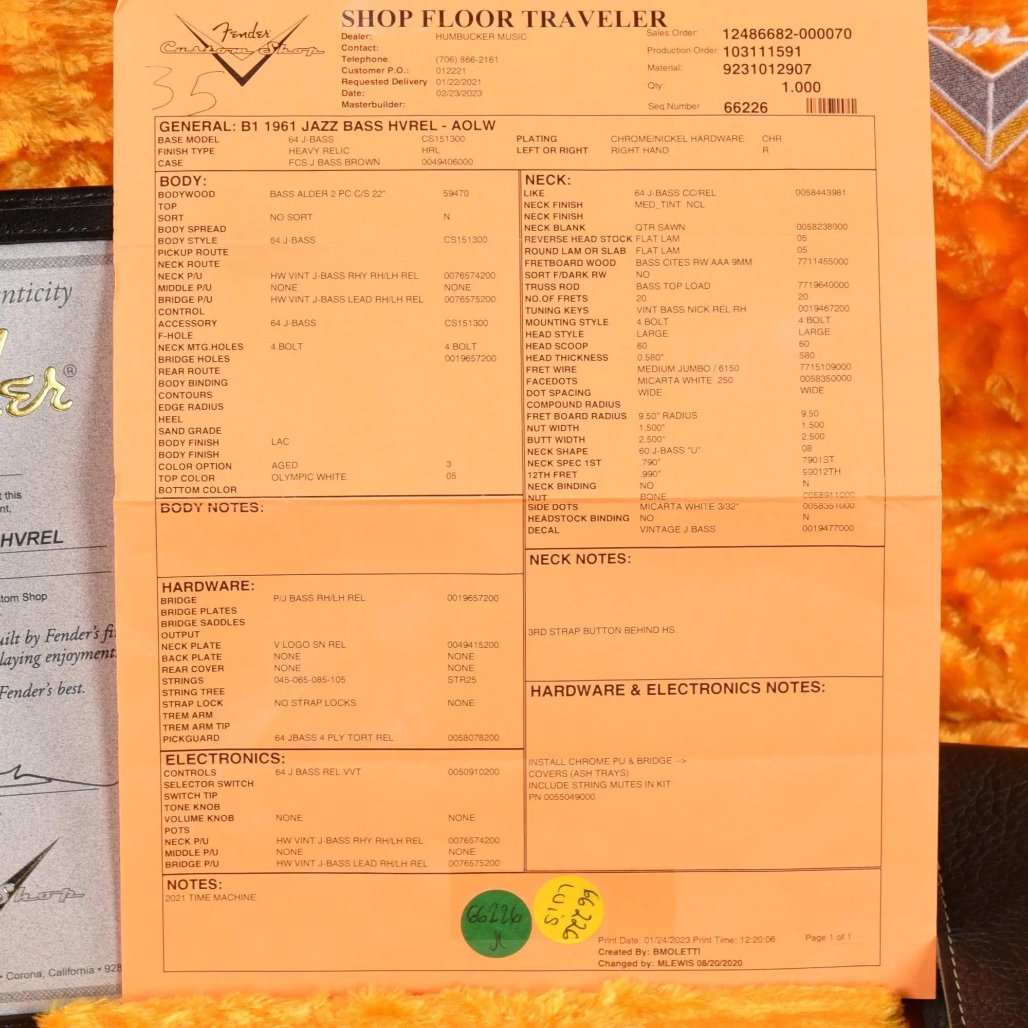 Hardware: Original Fender tuners, nut, bridge, and saddles. The pickup and bridge covers are included with the bass.