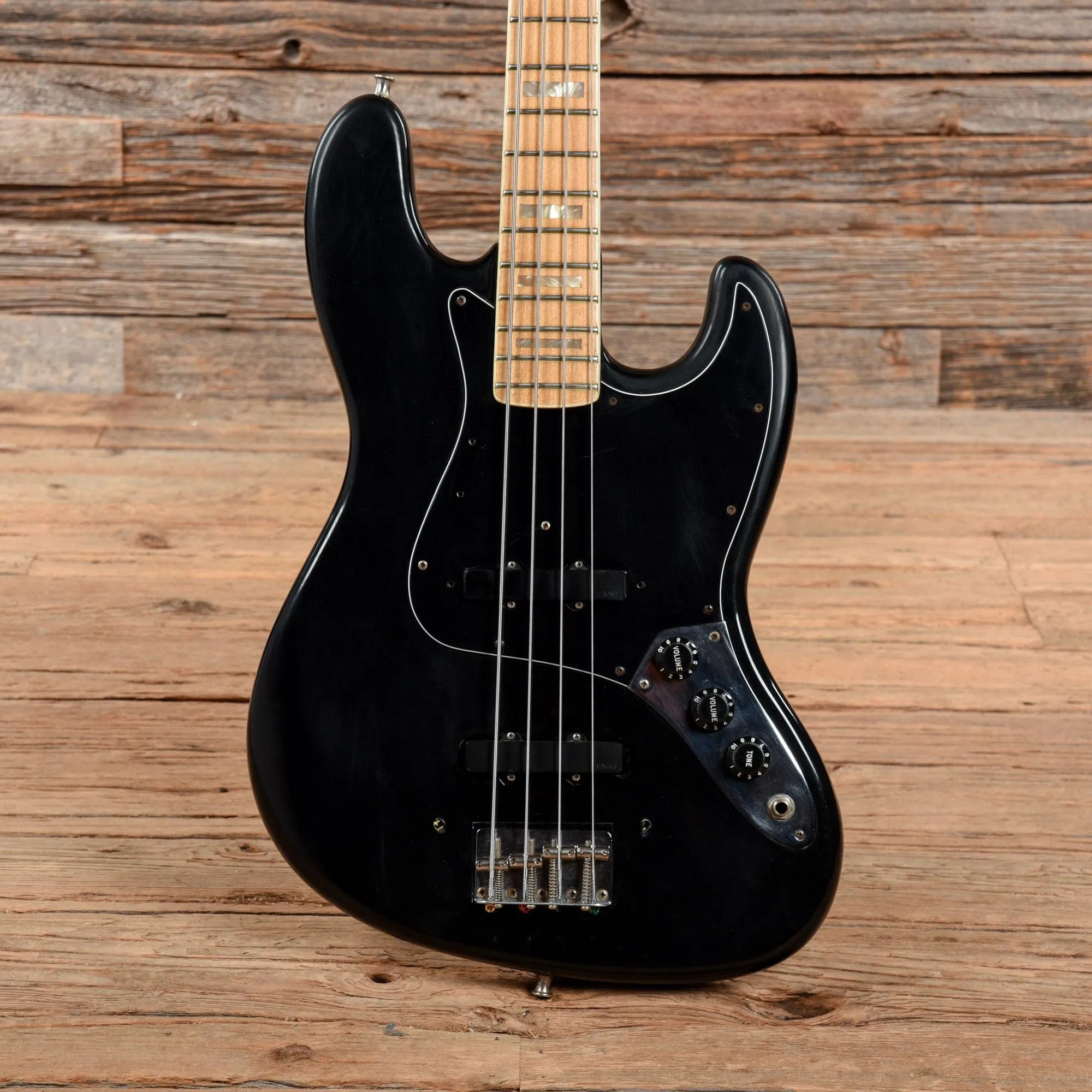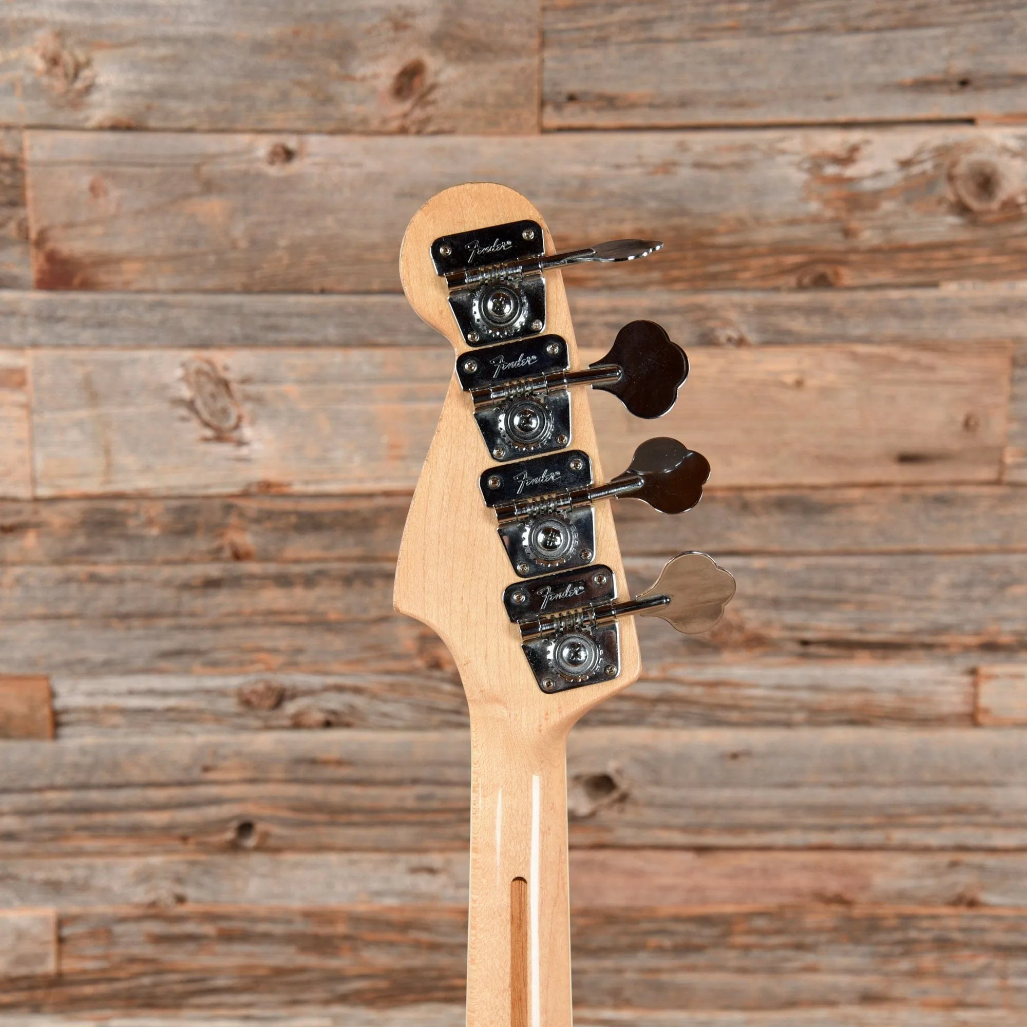 Electronics: The electronics have been replaced. EMG Jazz Bass pickups have been installed with new pots. Each pickup has its own dedicated volume control, and both are connected to a master tone control.