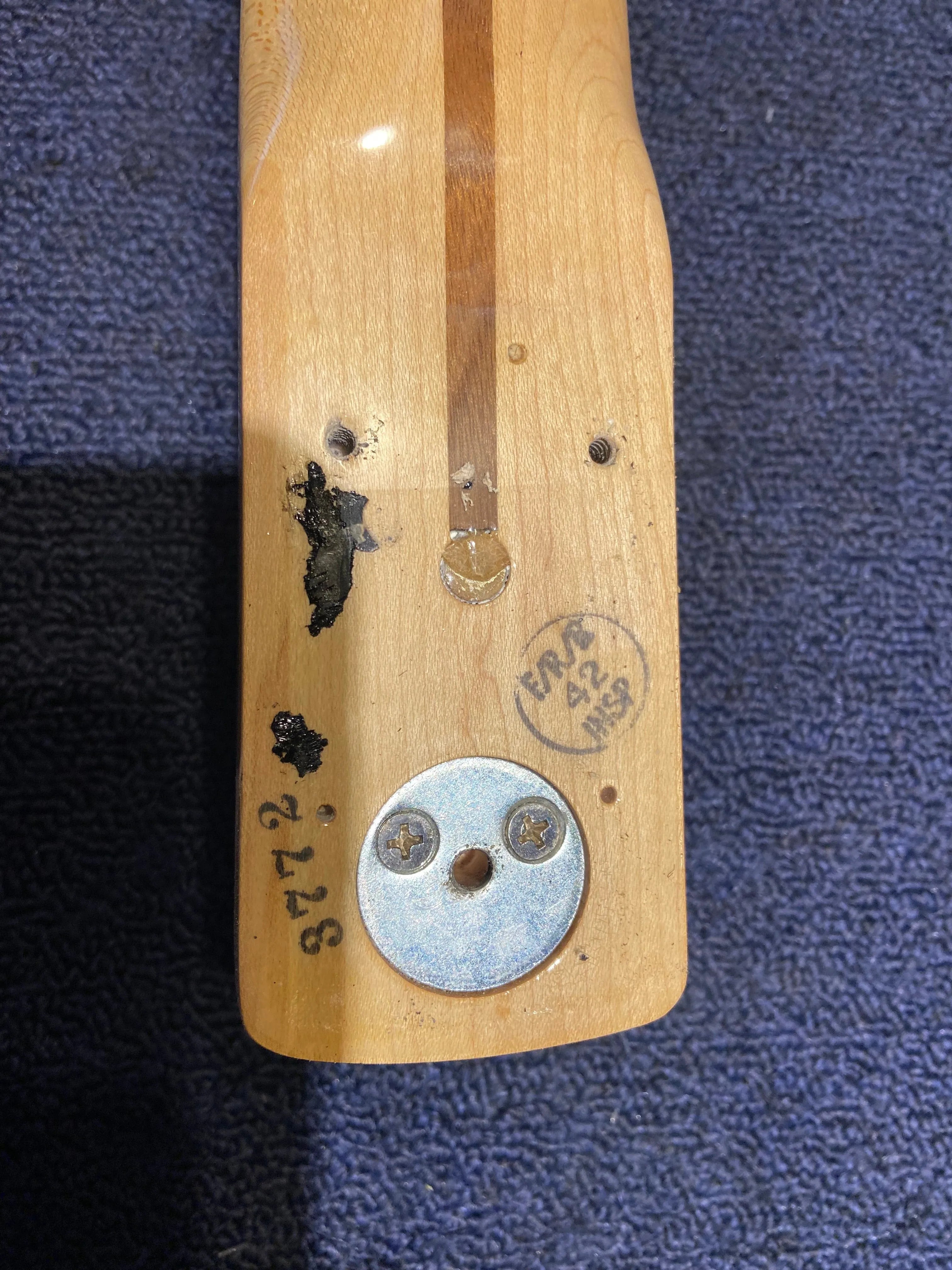 Neck Details: One-piece maple neck with bound maple fingerboard. The date stamp dates to 1977.