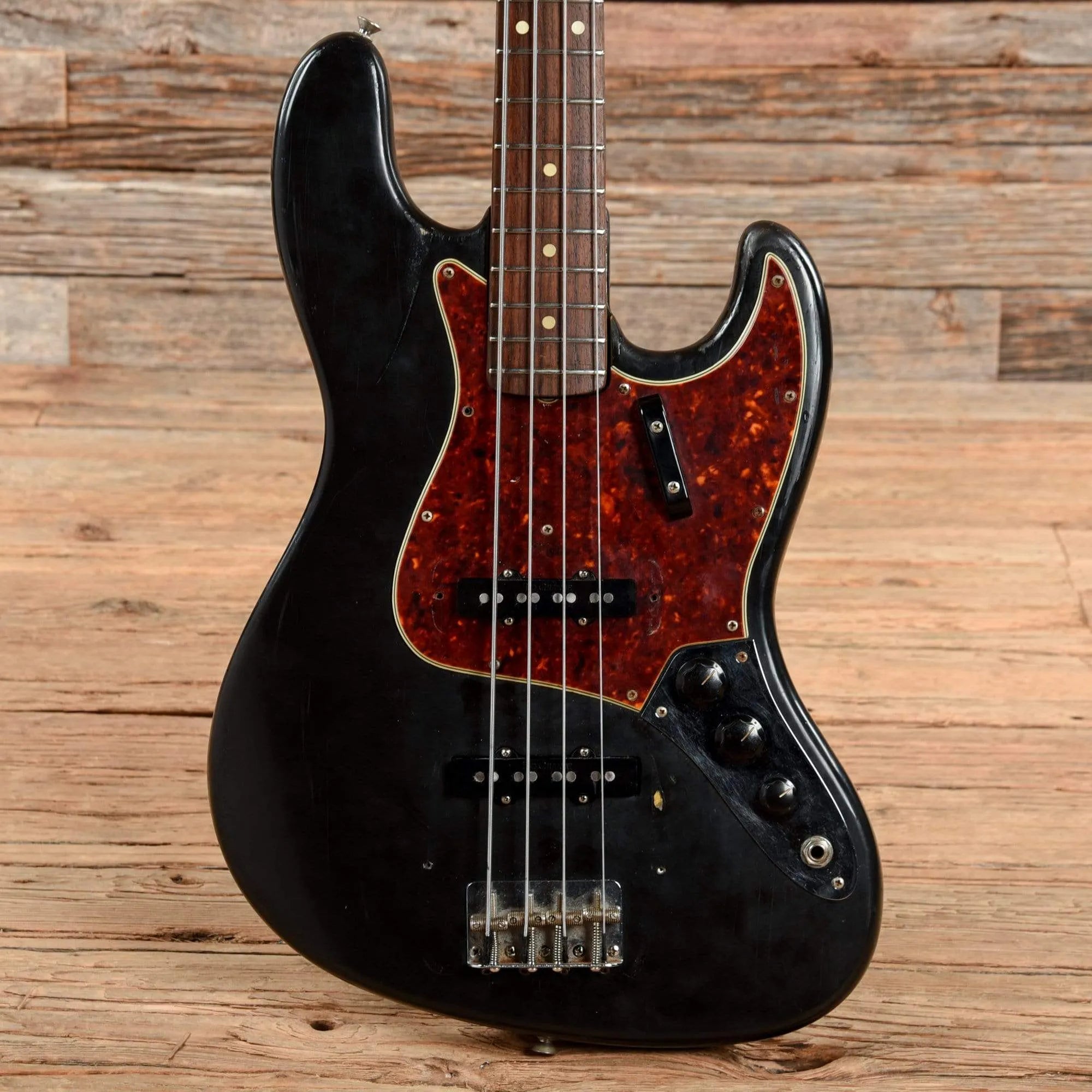 Cosmetic Condition: The bass has a fair amount of play wear. The neck has aged nicely and the new finish is clean. The body has scratches, dings, and chips throughout.