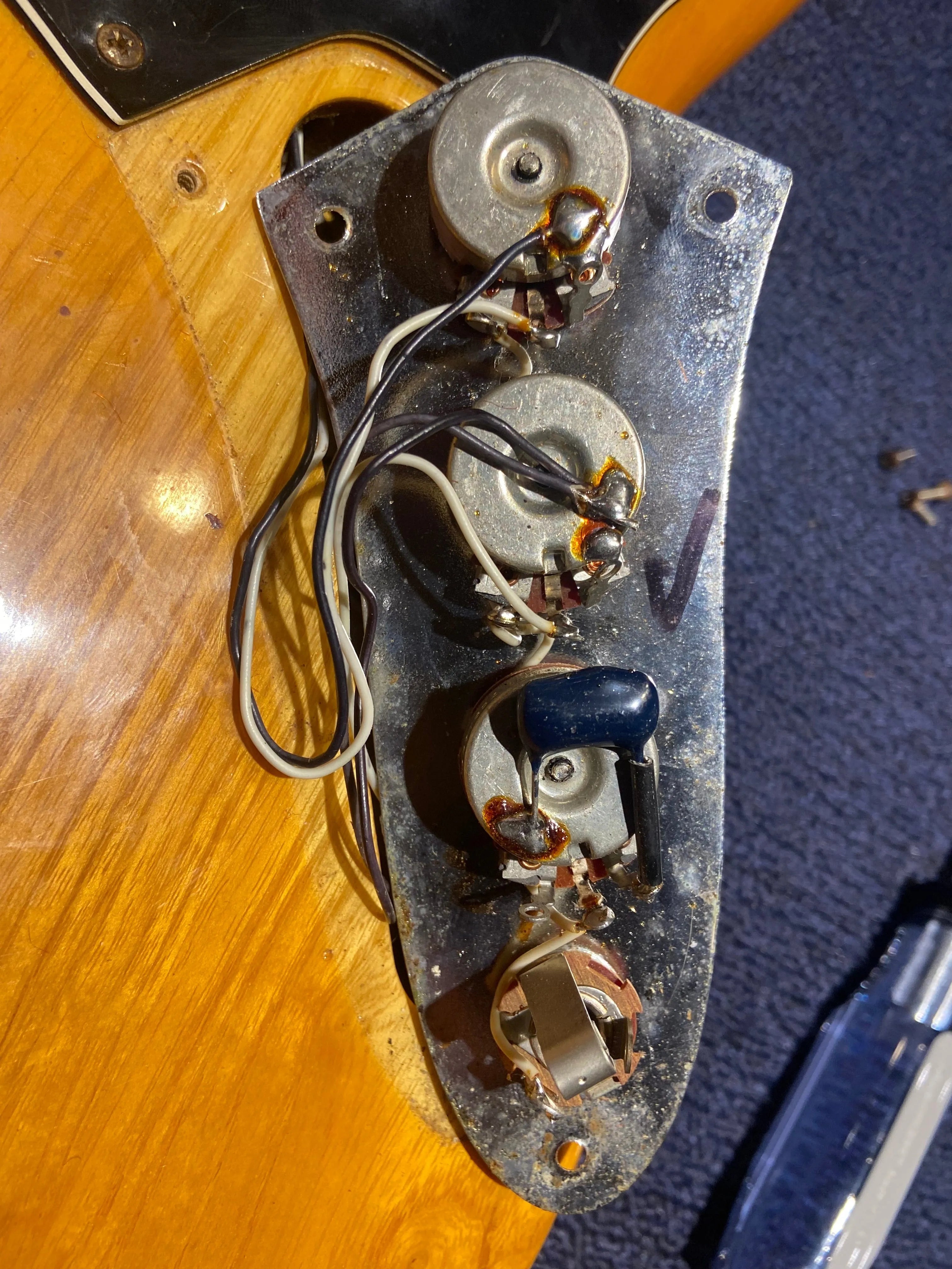 Electronics: Electronics appear original; period correct Jazz Bass pickups with neck volume, bridge volume, and master tone controls. Pot codes date to 1976. Untouched solder joints.