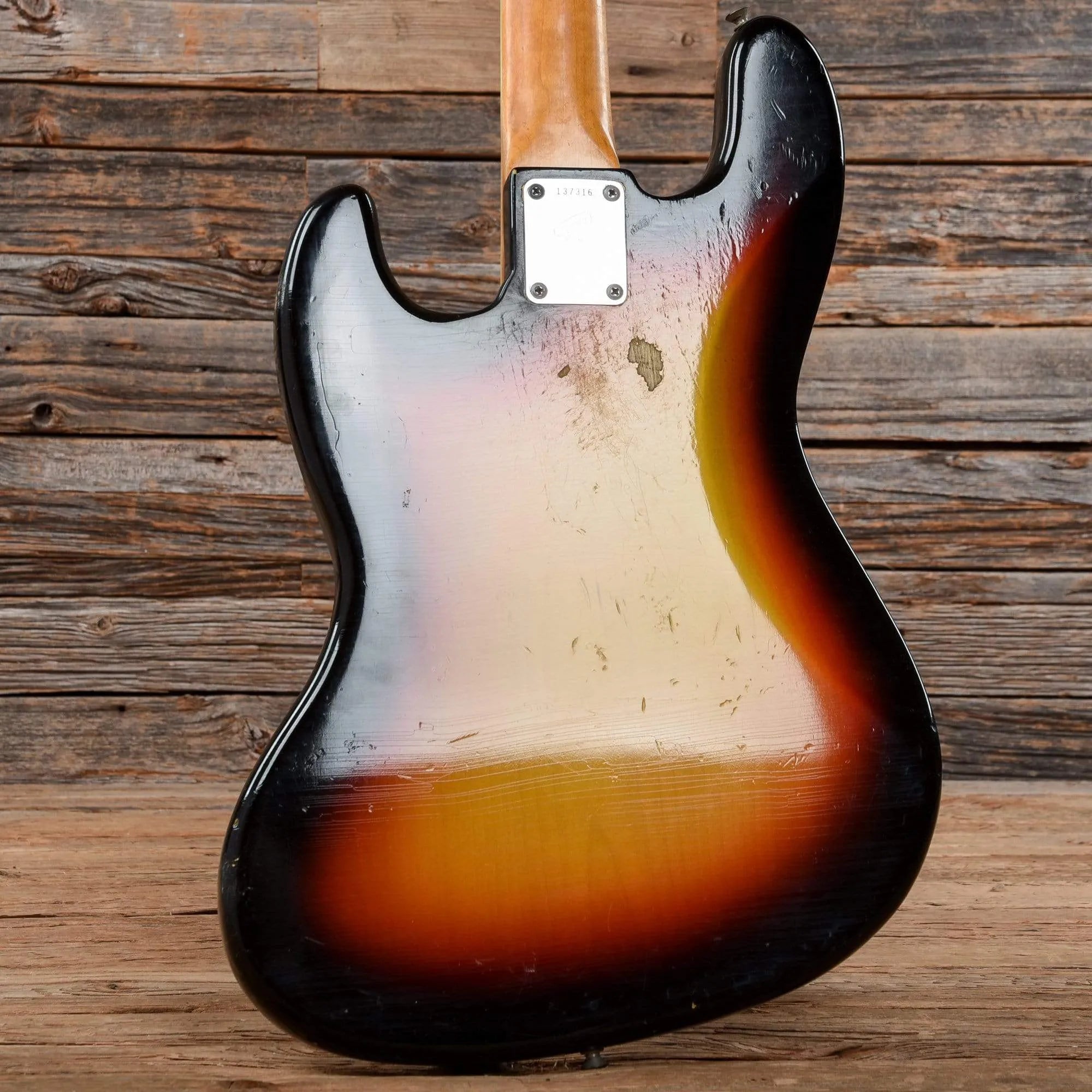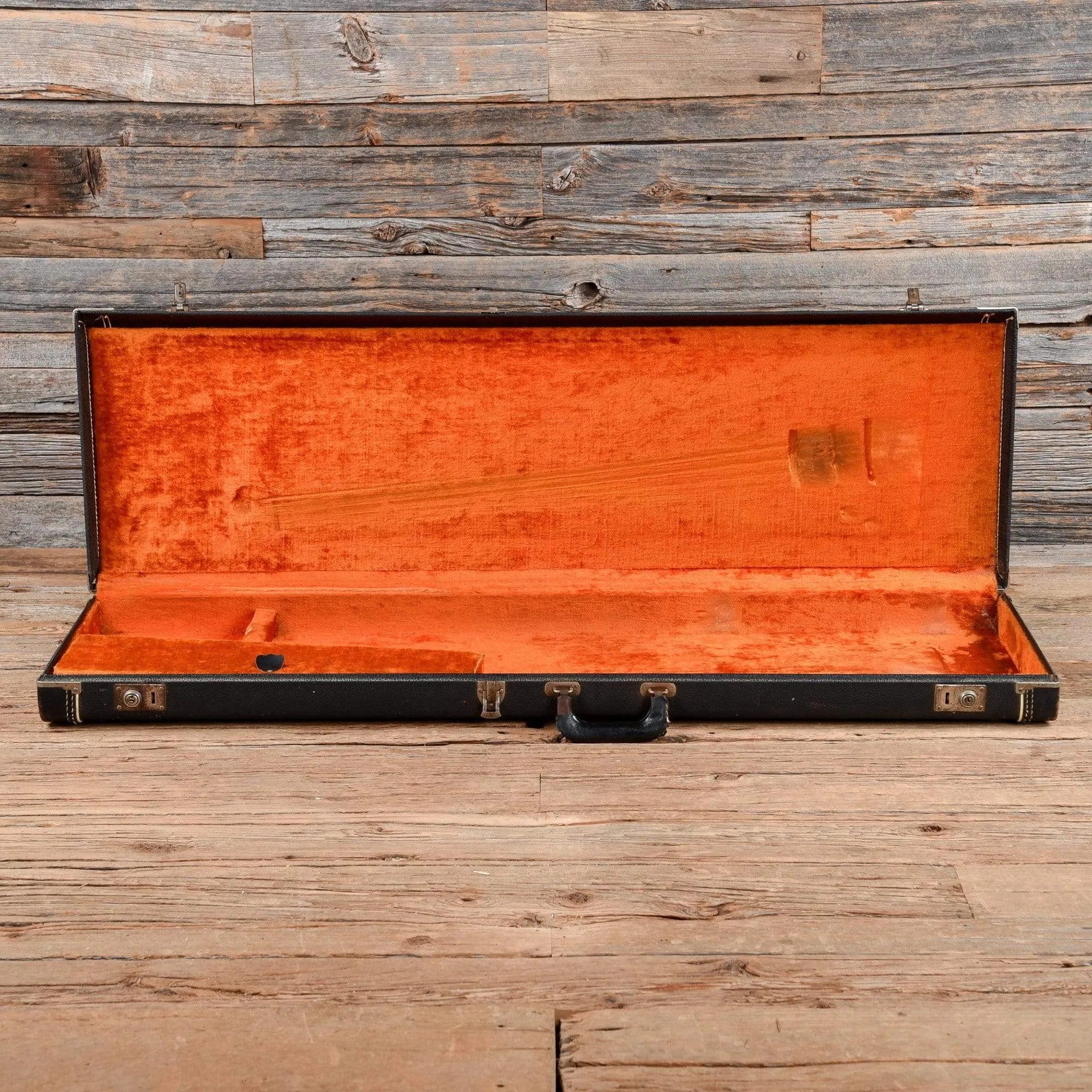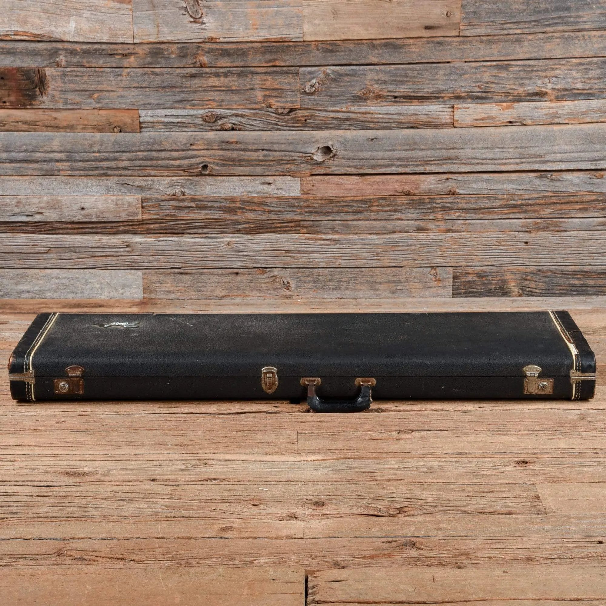 Cosmetic Condition: This bass shows lots of aging and wear. Heavy checking can be seen throughout the bodies finish. Buckle rash with a small area of chippage/wear through the finish is present on the back. The back of the neck shoes handwear up and down. There dots of missing finish bordering the headstock face, perhaps from having been bejeweled. The hardware shows tarnishing.