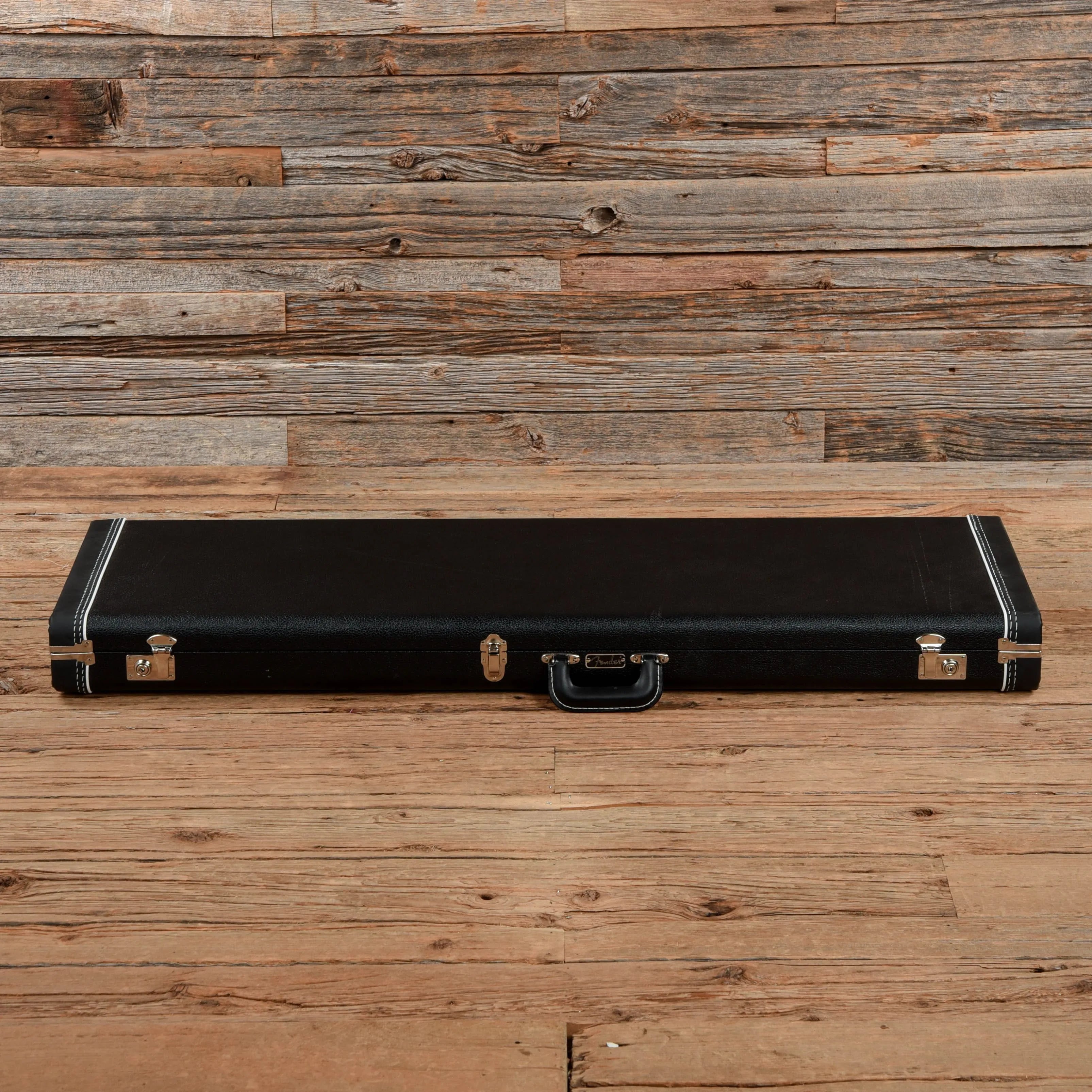 Cosmetic Condition: The bass shows age related wear on the neck underneath the newer clear coat, including patches of finish wear and small dings around the headstock. The neck also has some light checking under the clear coat, and some small chips on the fingerboard from the prior refret. The body shows various light scratches and small dings, as well as some finish chipping around the strap buttons.