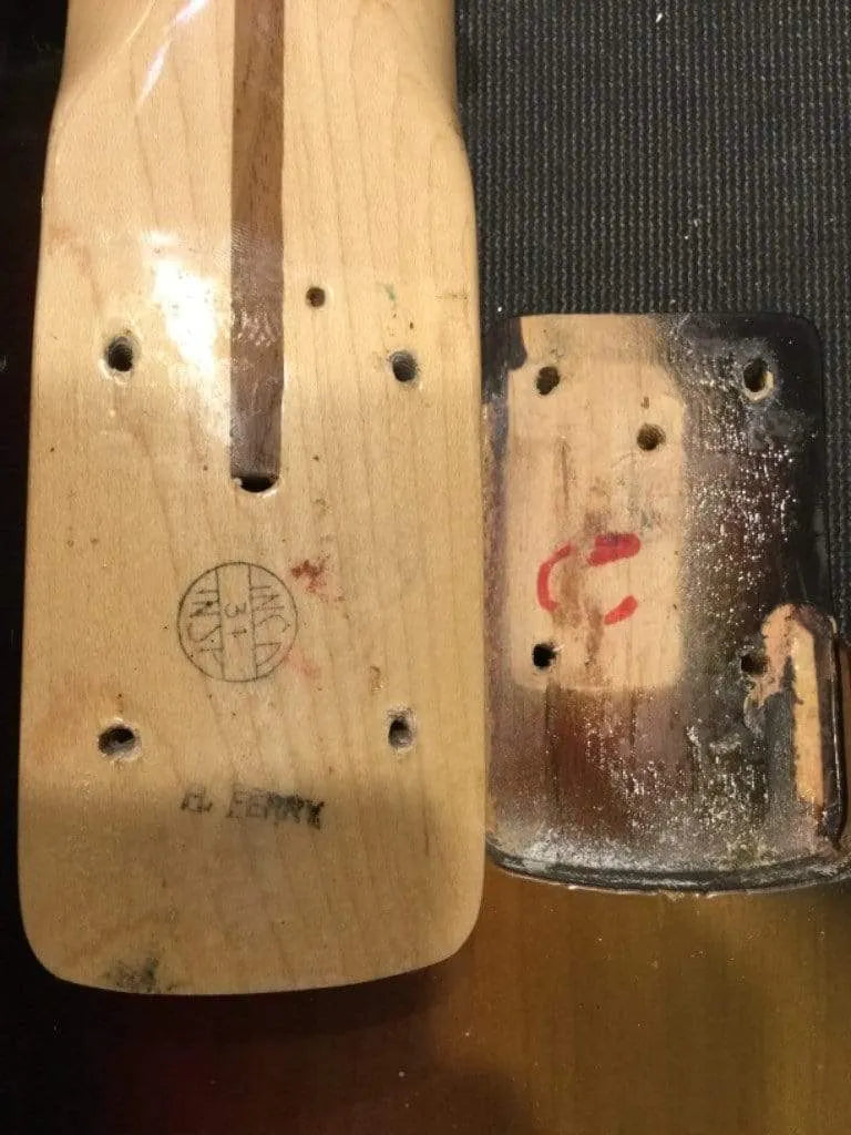Neck Details: Bolt-on fretted maple neck with skunk stripe, unbound fingerboard, dot inlays, and heel adjust truss rod. The heel stamp dates to 1972.