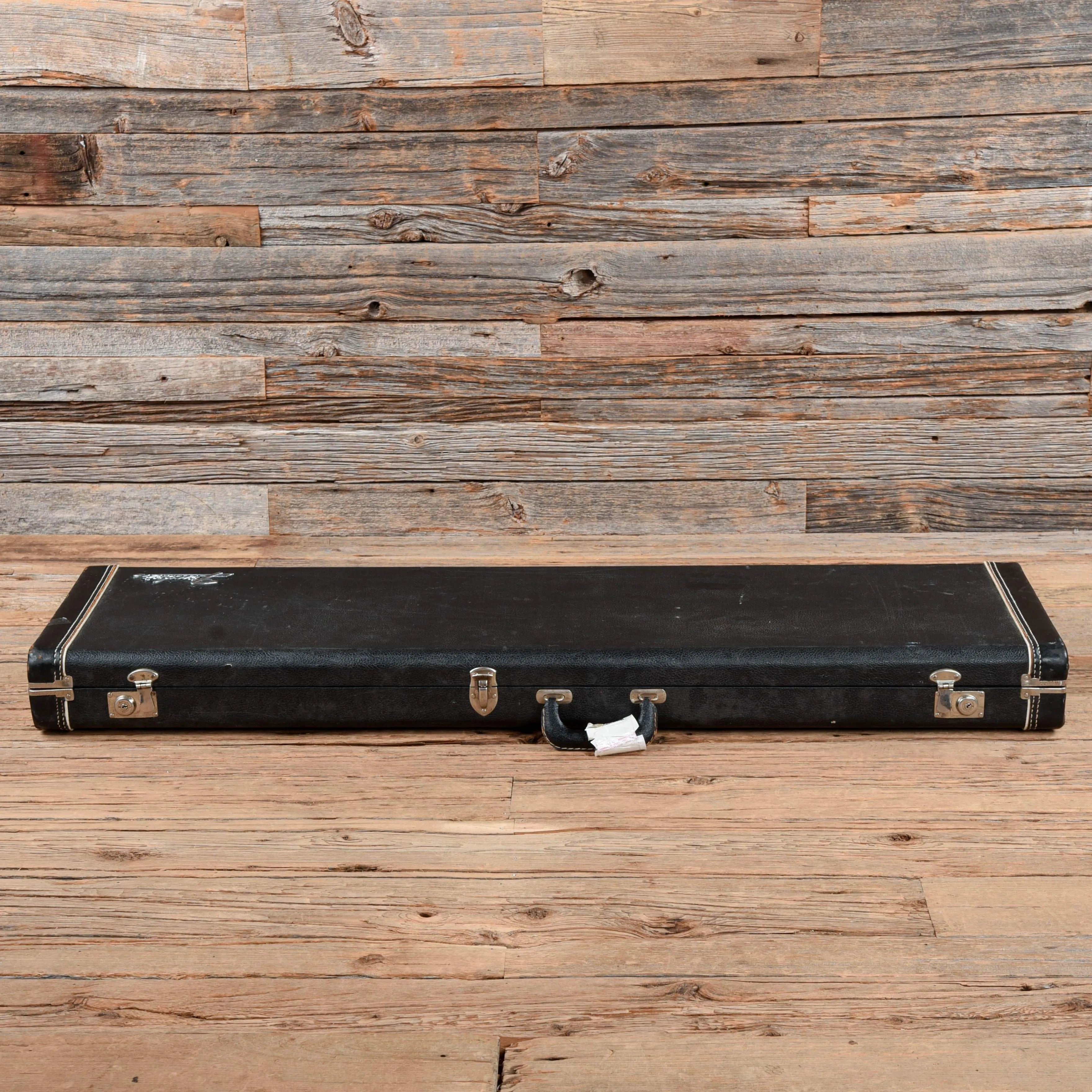 Tech Notes: Plays well with low action and optimal neck relief. The new frets are tall and show little sign of play wear. Currently set up with .051 – .110 gauge flatwound strings. The serial number dates this bass to 1975 and the pot codes date to 1974.