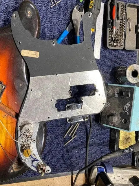 Hardware: -original tuners, bridge, strap buttons, knobs -pickguard is era-correct but not original -several pickguard screws have been replaced -thumbrest, pickup cover, and bridge cover have been removed