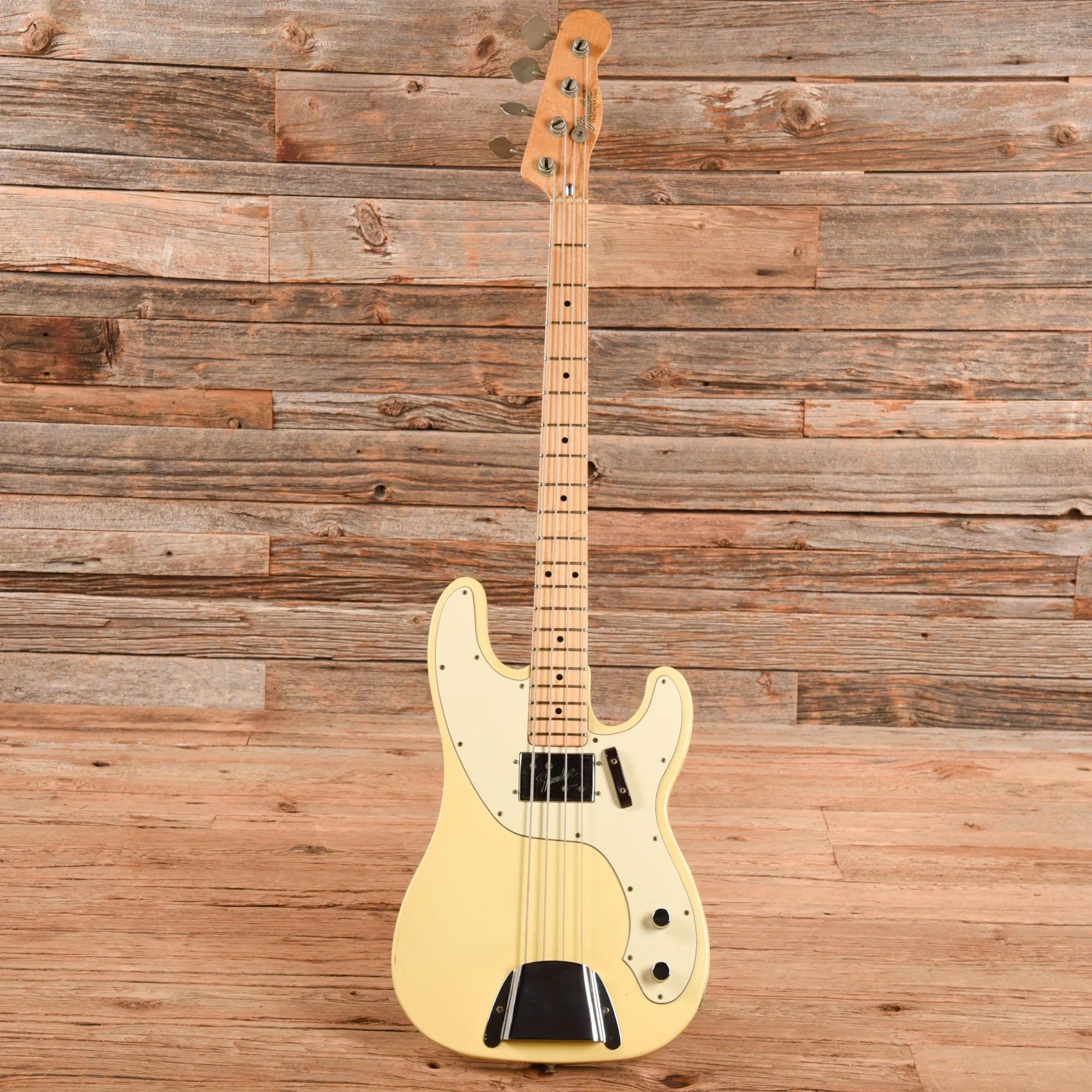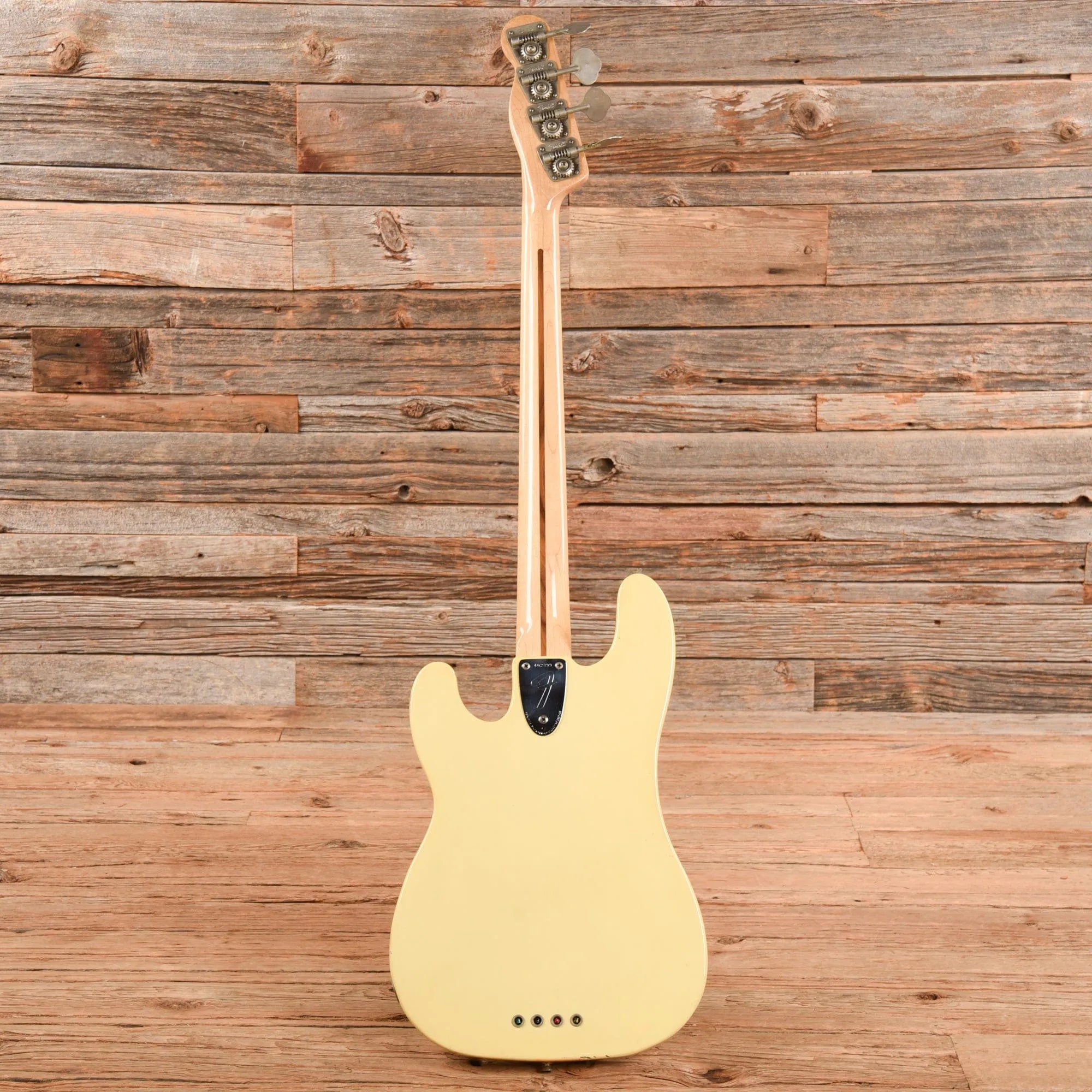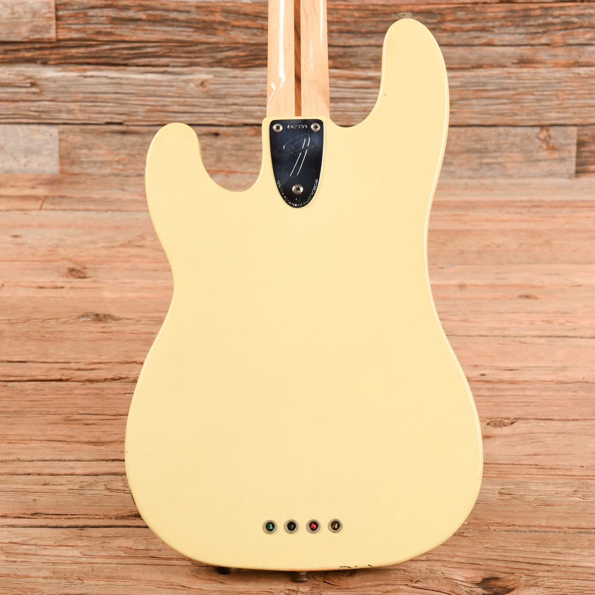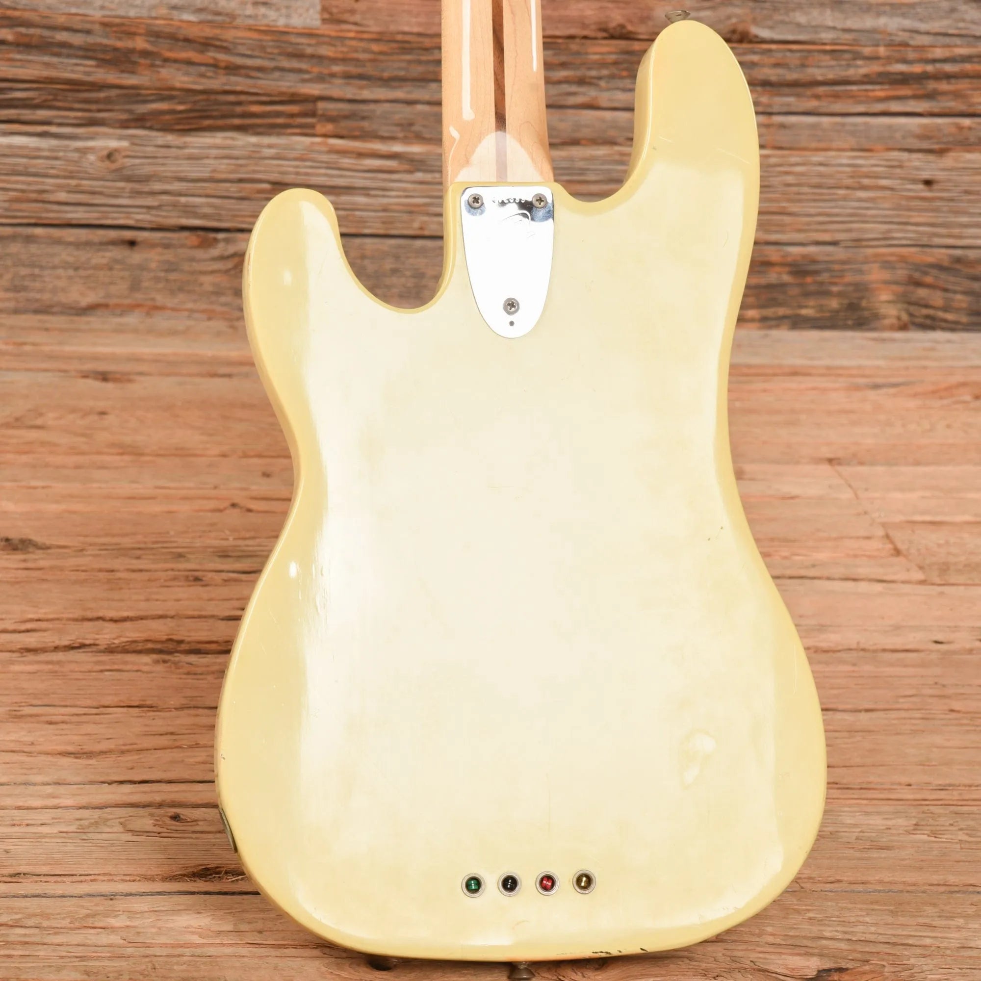 Cosmetic Condition: This vintage Fender bass shows nice aging, with various light scratches, dents, and marks on the yellowed finish. The back of the body has minor buckle rash, and the glossy neck is smooth with only a few dents.