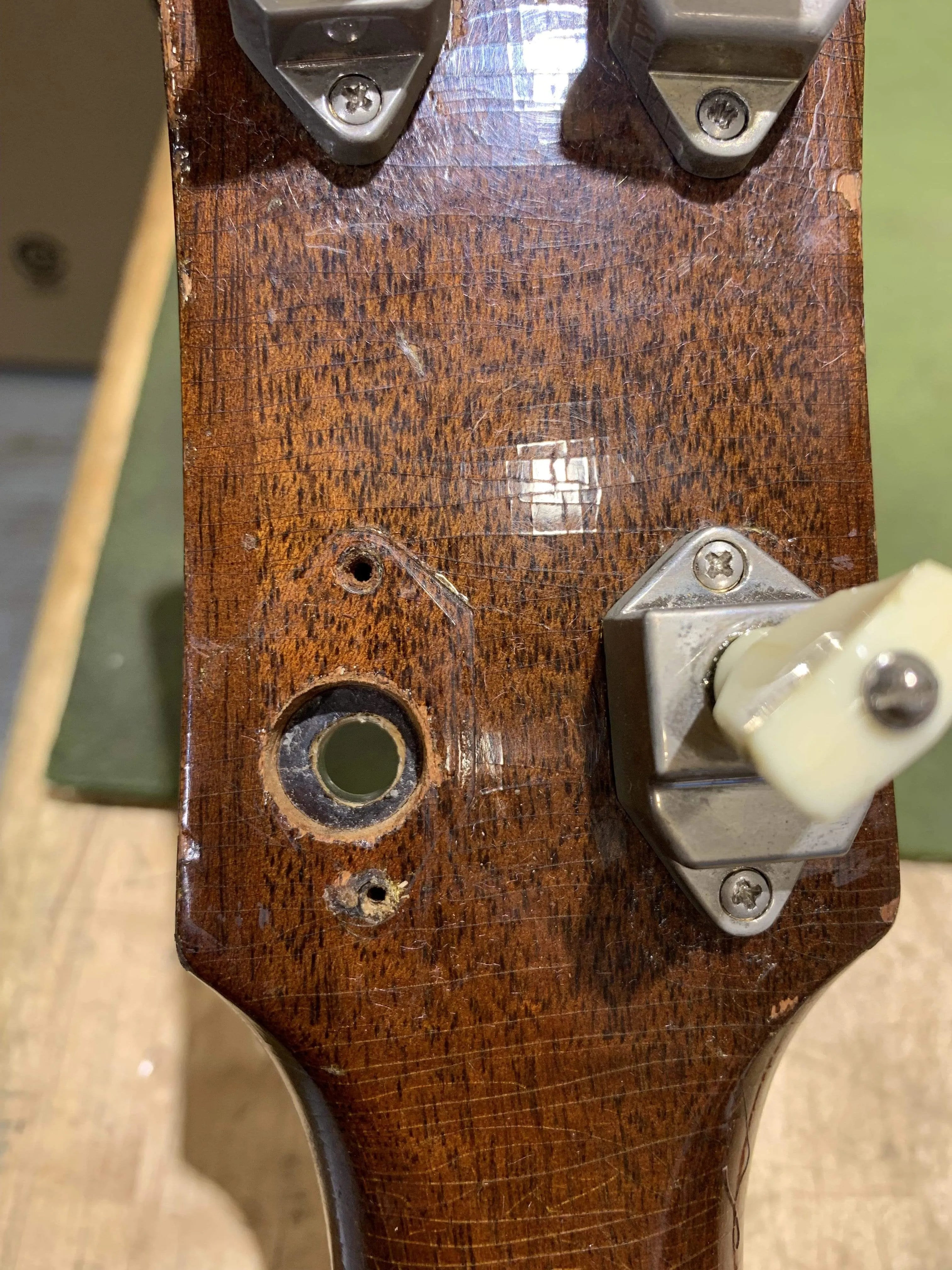 Modifications/Repairs: -The nut and jack plate are not original -Some solder joints have been touched up -Three of the tuners are not original -The tuner holes have been plugged and re-drilled, and the area of the headstock around these has been touched up with black