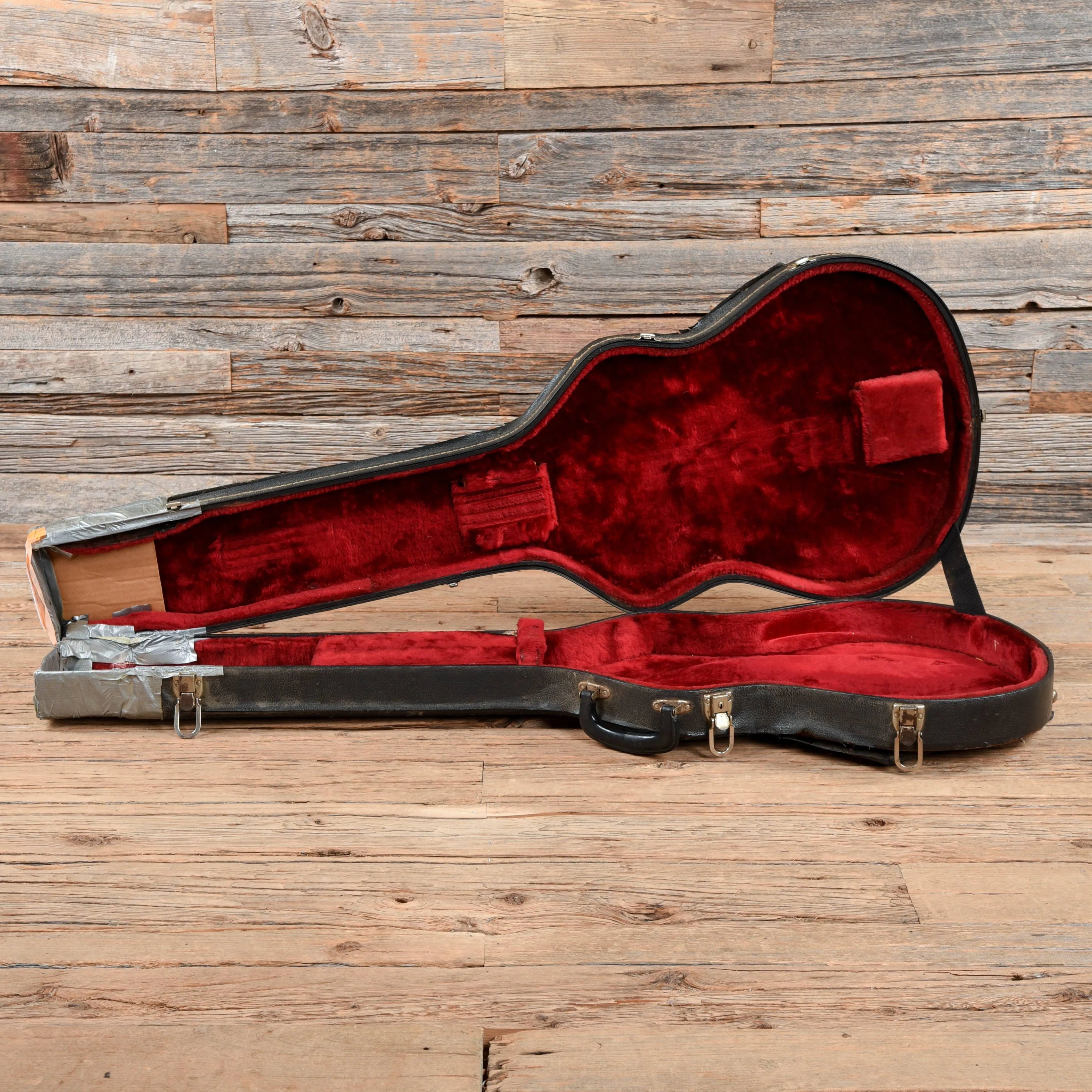 Case Details: Hardshell case is an era-correct Gibson ES-335 case that has been extended with cardboard and duct tape. The tolex is peeling away around the edges.