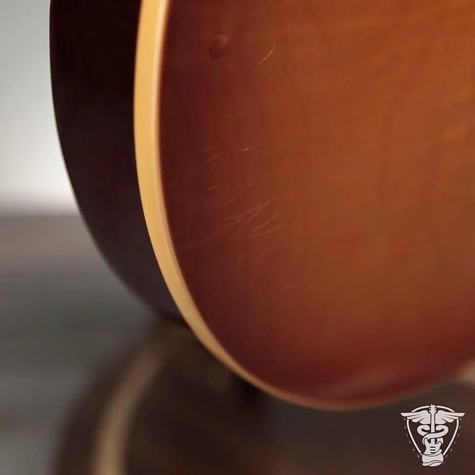 Body: A few small dings/impressions throughout. Buckle rash. Tiny ding in lower horn binding – front edge. Light scratches and tiny dings throughout.
