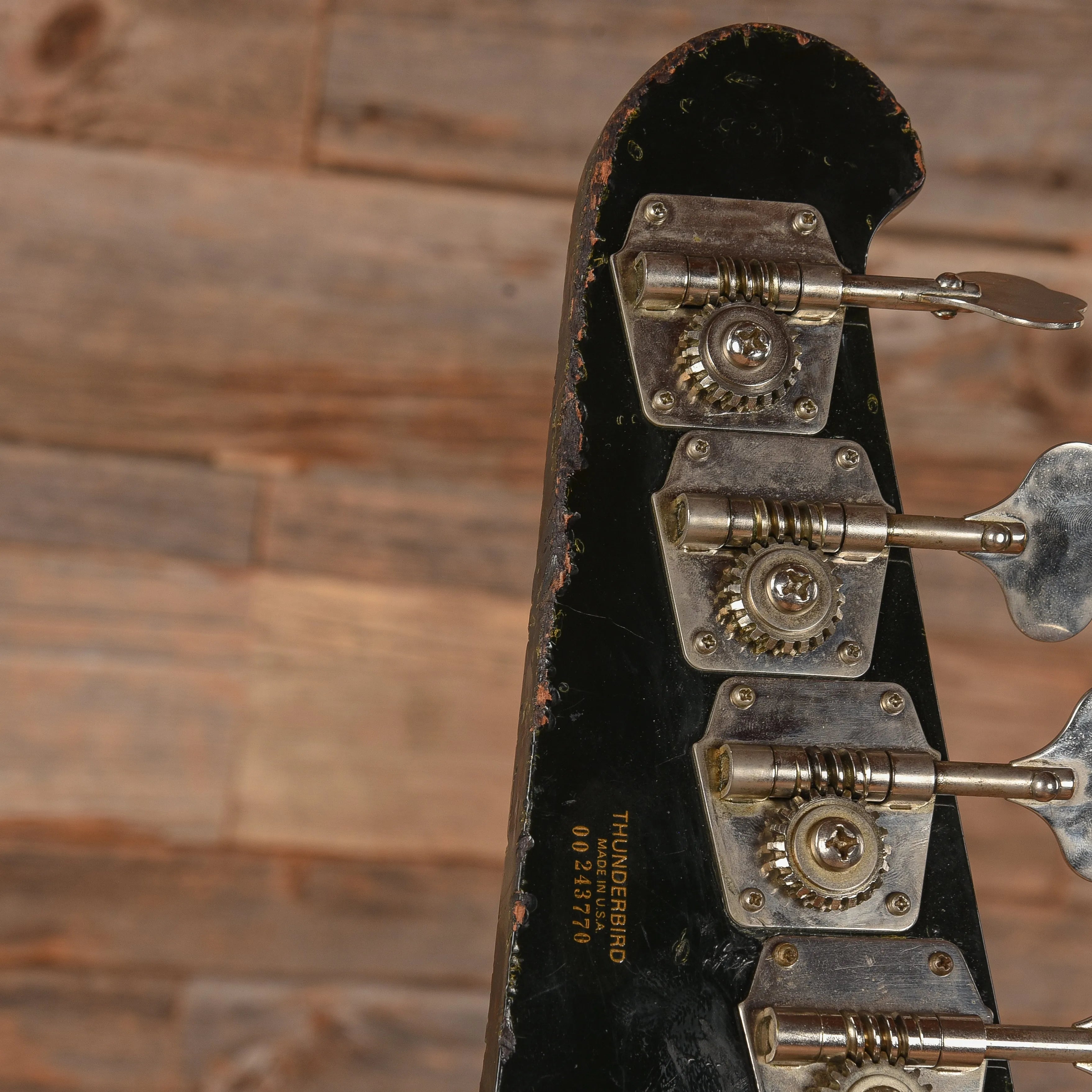 Tech Notes: This Thunderbird plays well with low action. The frets are tall and show moderate wear. It is being dated to 1976 based on “00” in the serial number.