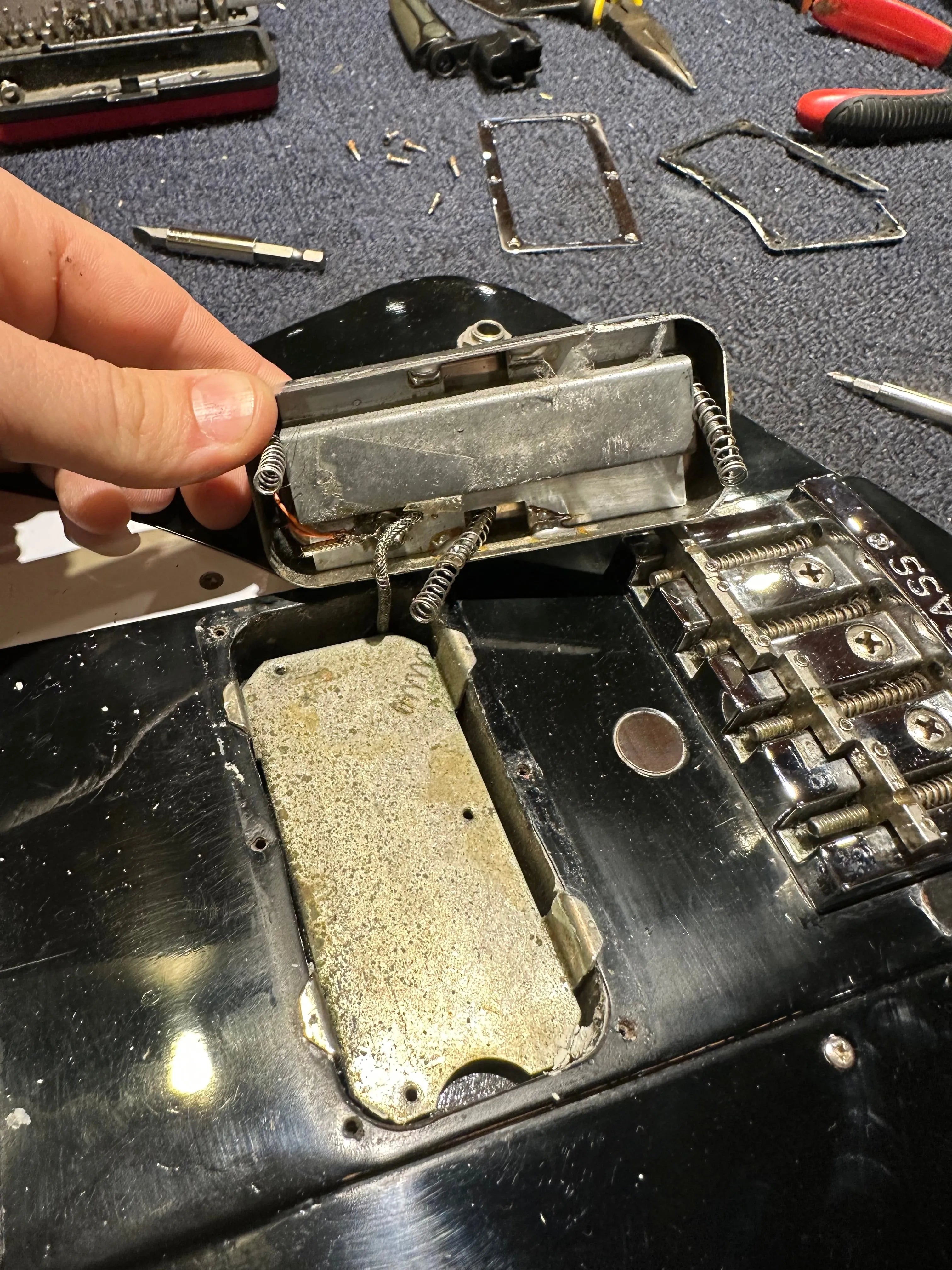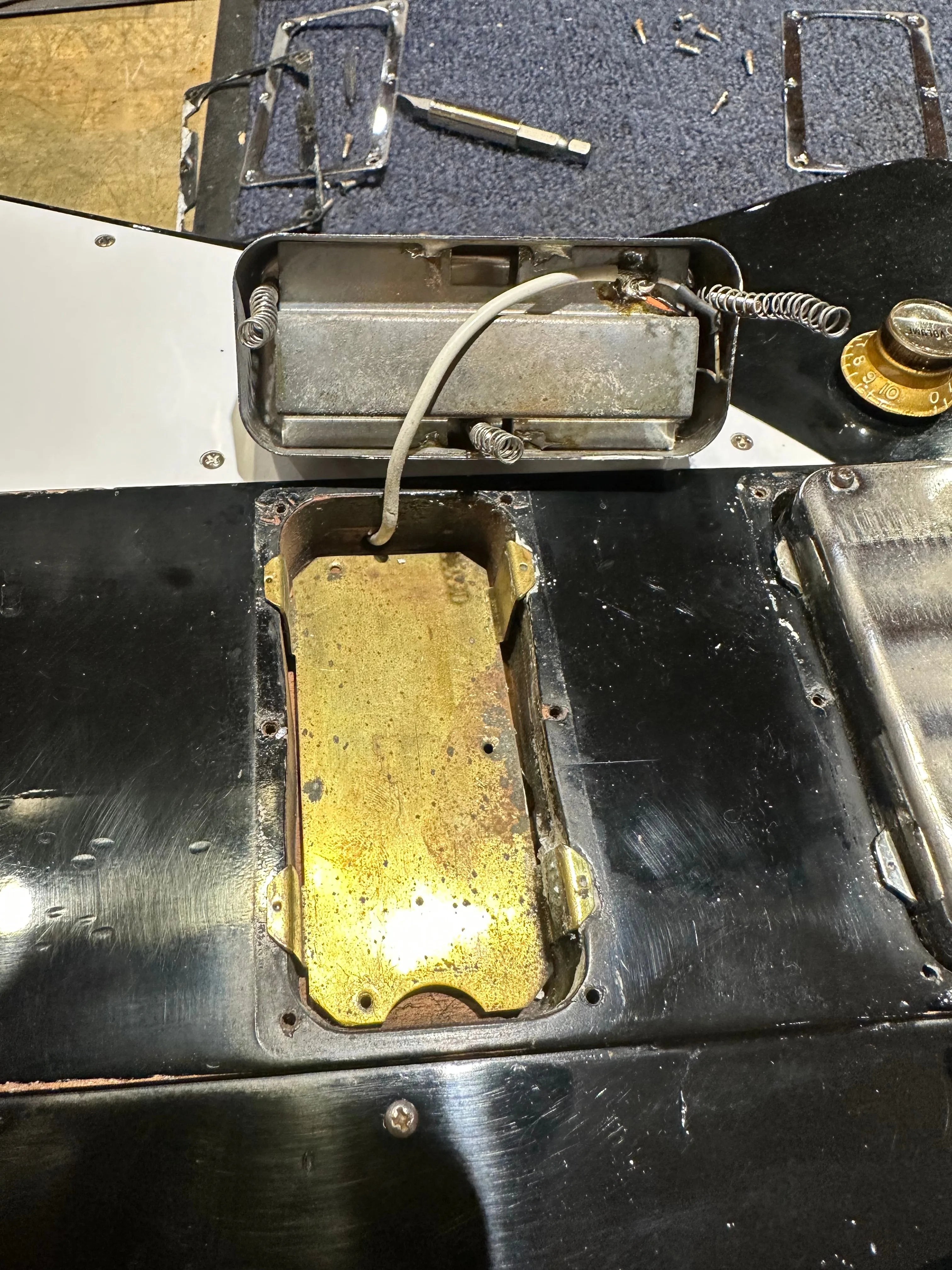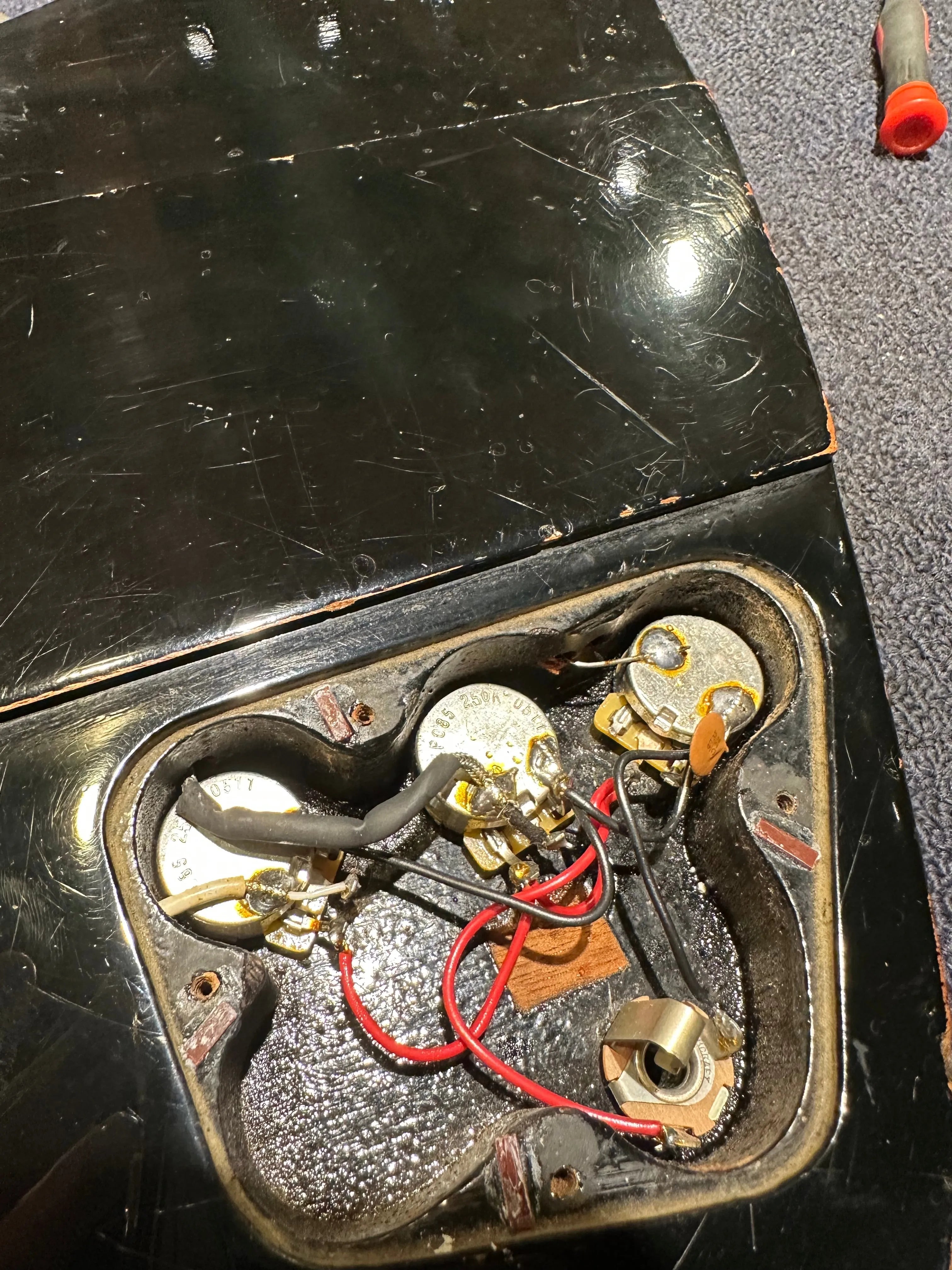 Electronics: The pickups appear to be original. The 250K pots and wiring are not original.
