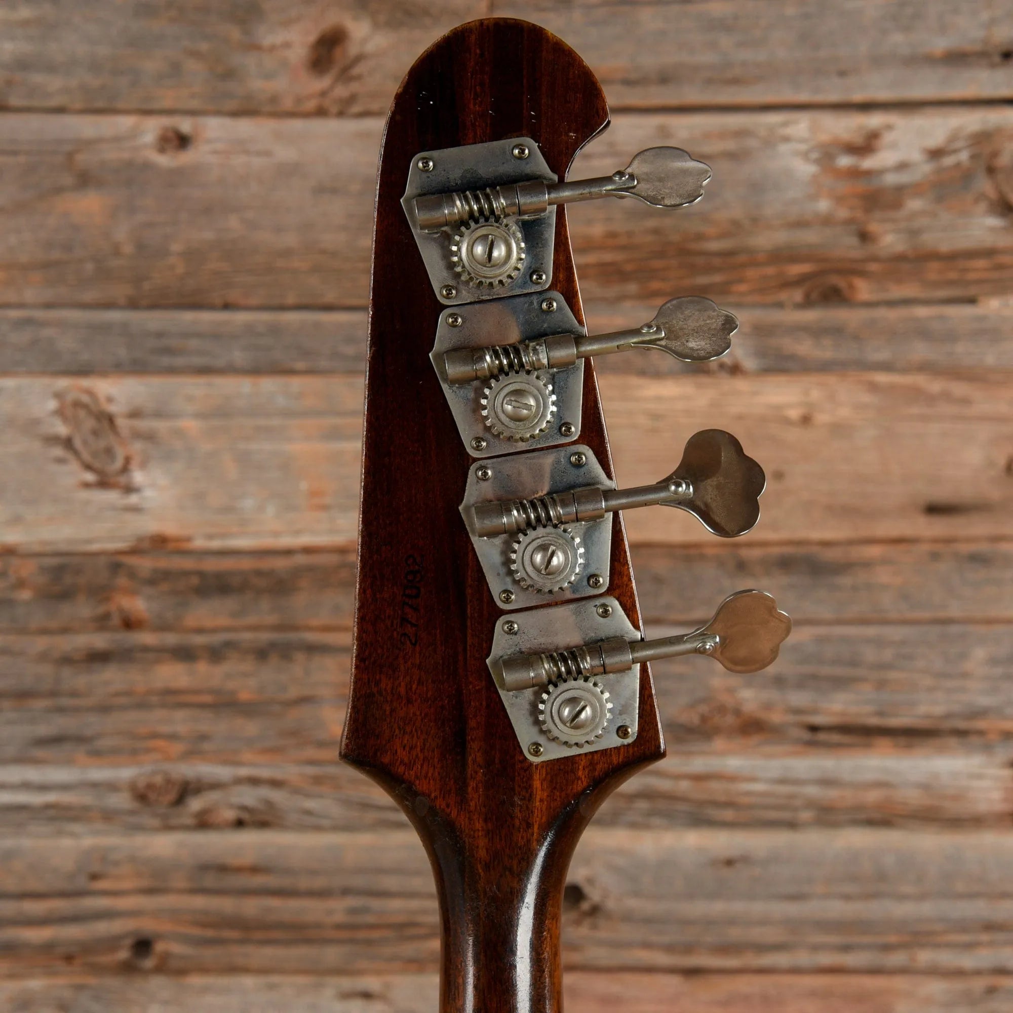 Cosmetic Condition: This vintage Thunderbird bass is in very good cosmetic condition, with light play wear given its age. The glossy finish has light checking, and some wear along the edges and back of the body including light buckle rash. There is a dent on the back of the body at the treble waist, and the back of the neck is glossy and lightly worn. The headstock face shows light hazing.