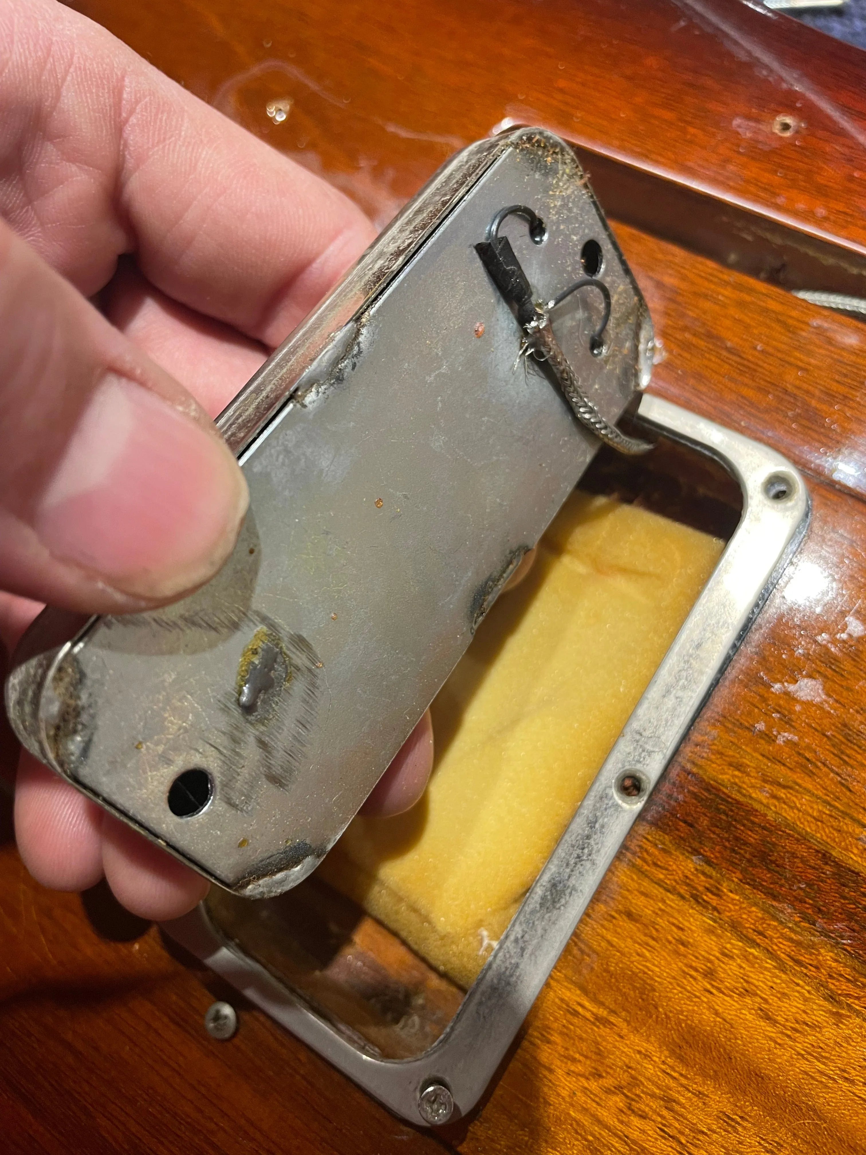 Hardware: Original. The pickup cover and thumb rest are missing.
