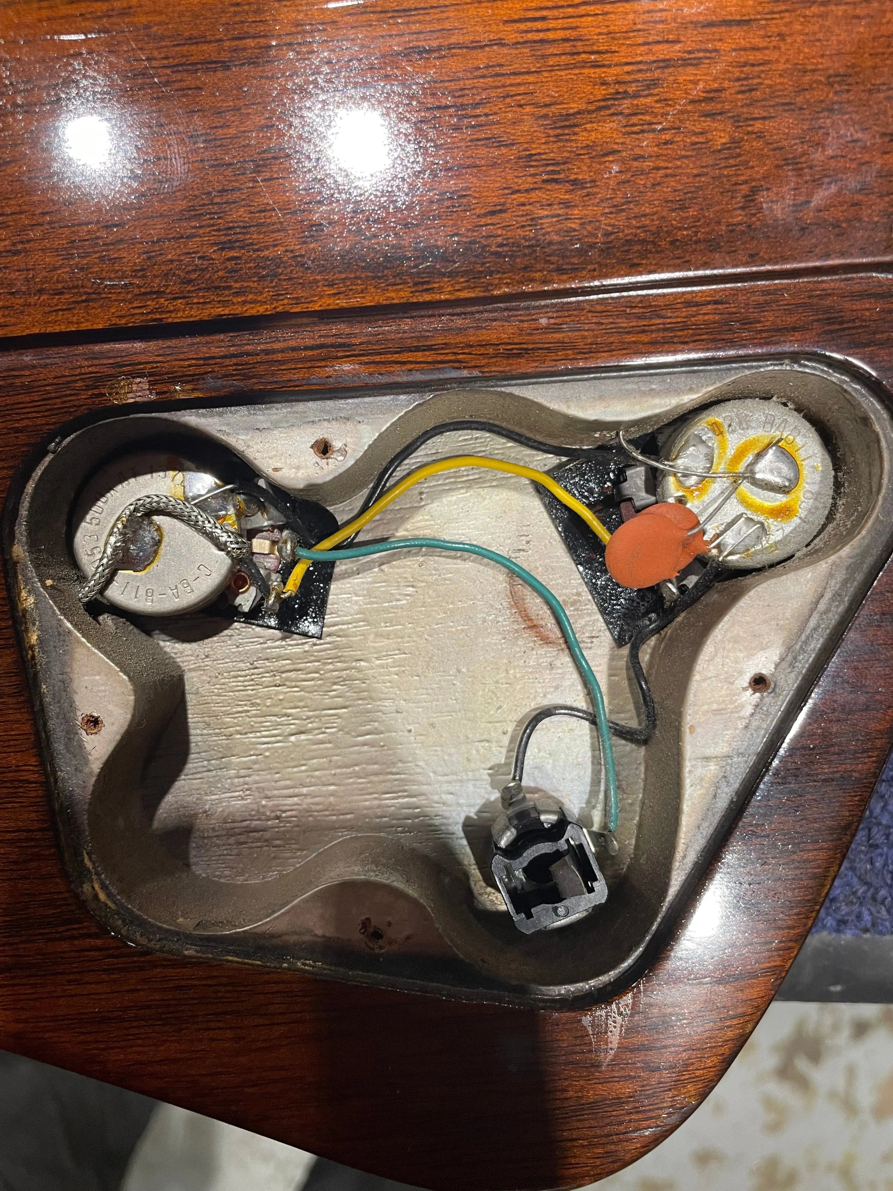 Electronics: Original Gibson Thunderbird pickup and original electronics, with master volume and tone controls. The pot codes are obscured by solder, but are the correct CTS pots for this era.