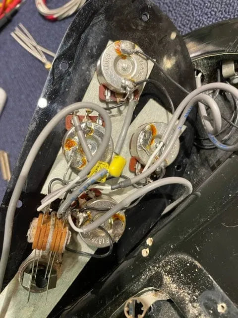 Electronics: Original pickups, wiring, and pots. Pots codes date the pots to 1984.