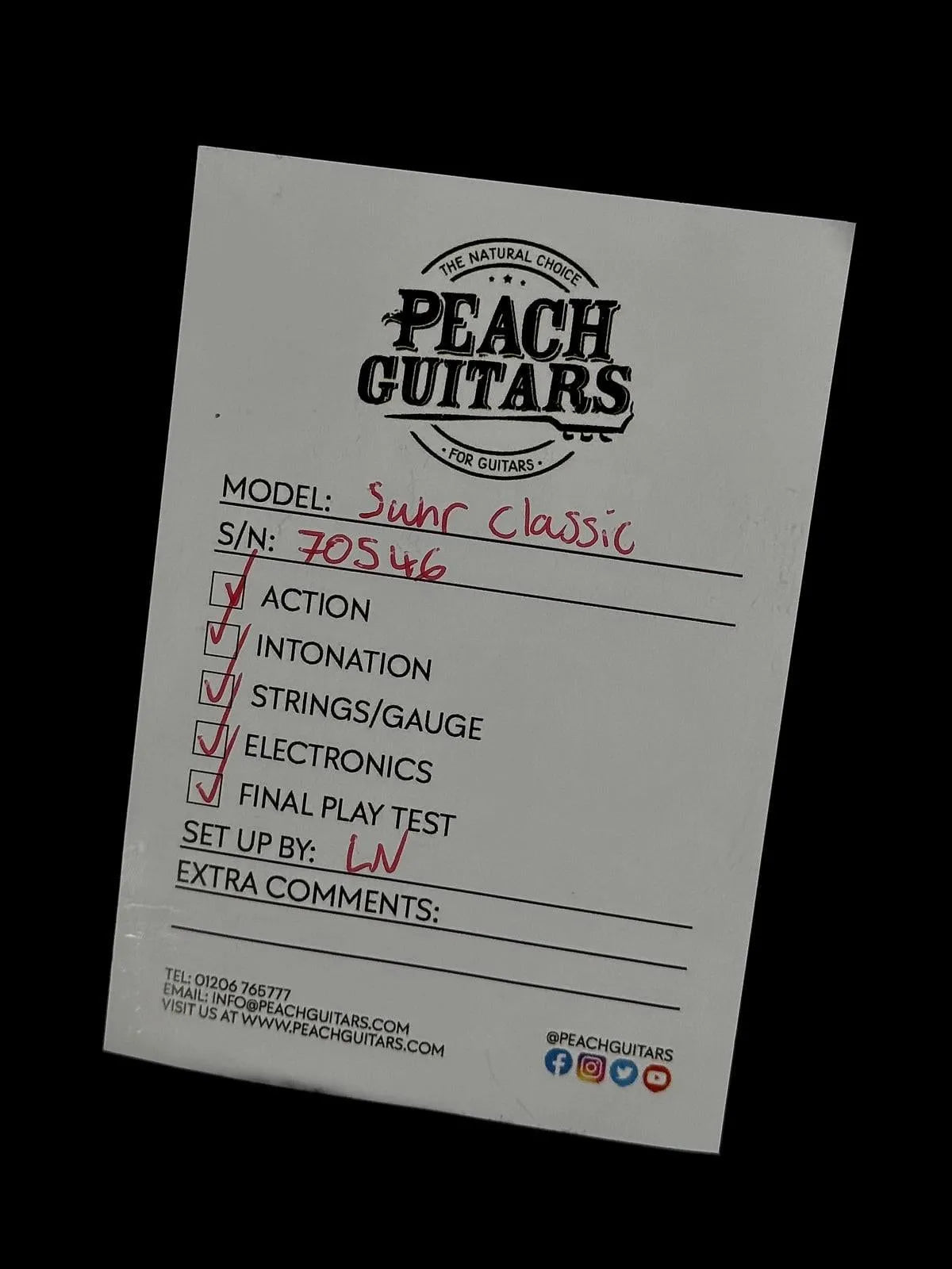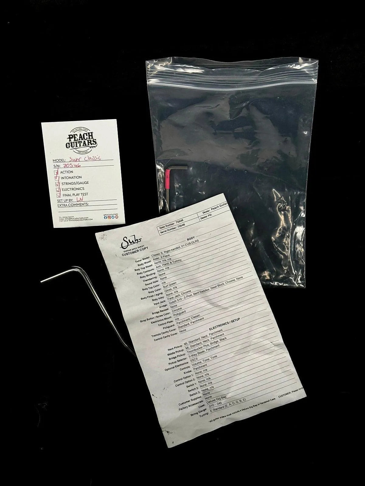 This Classic S is all original and in mint condition. This guitar is a Peach Guitars “Dealer Select” Limited model. The Dealer Select upgraded options include a roasted maple neck and ML Standard/Thornbucker Plus pickups. Please refer to all photos. Find rare, vintage, and high-end guitars at The Guitar Rescue. Shop iconic instruments at amazing prices today!
