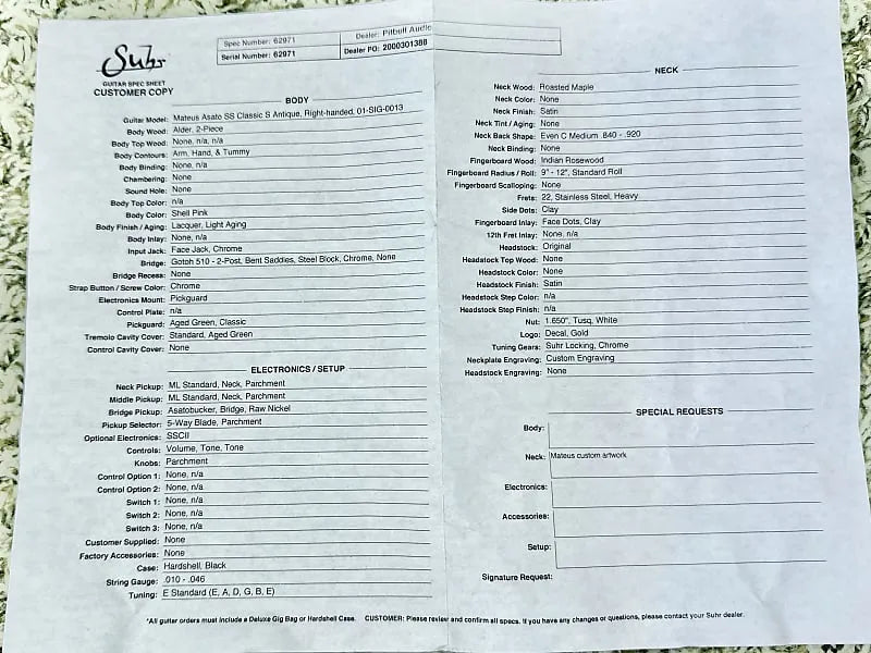 Be the first to review “Suhr Mateus Asato Signature Classic S Antique – Shell Pink – The Guitar Rescue” Cancel reply