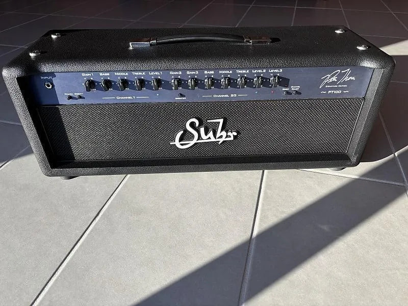 Le Suhr PT100 Signature Edition (élaboré avec Pete Thorn) comprend une tête d’amplificateur à tubes à trois canaux de 100 watts chargée d’un transformateur de sortie personnalisé de type « Plexi », de quatre tubes de puissance EL-34 et de six tubes de préampli 12AX7, d’une boucle d’effets série/parallèle à semi-conducteurs et d’un pédalier programmable à 4 boutons.